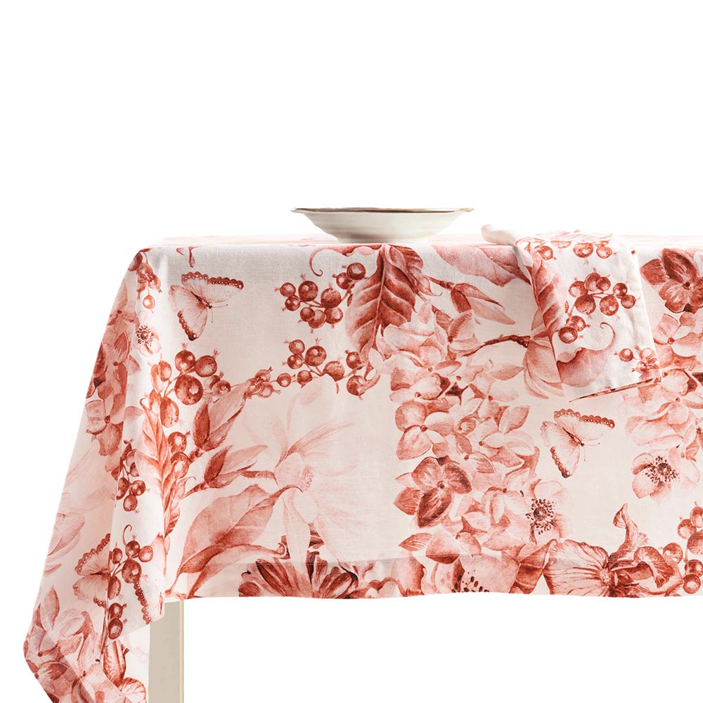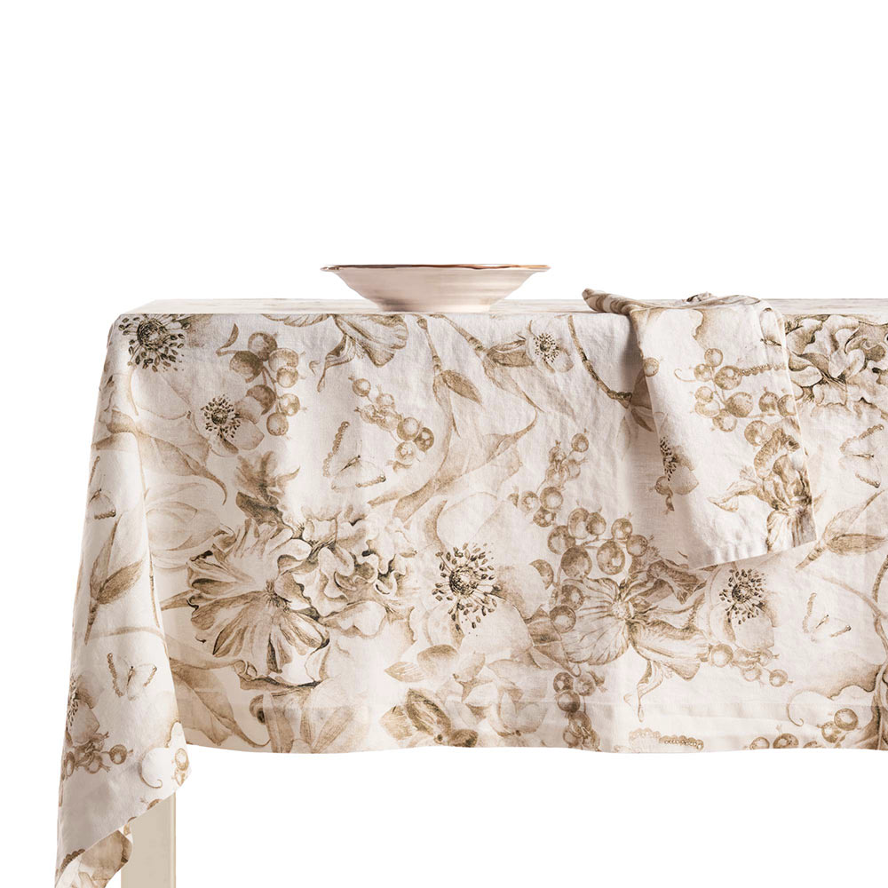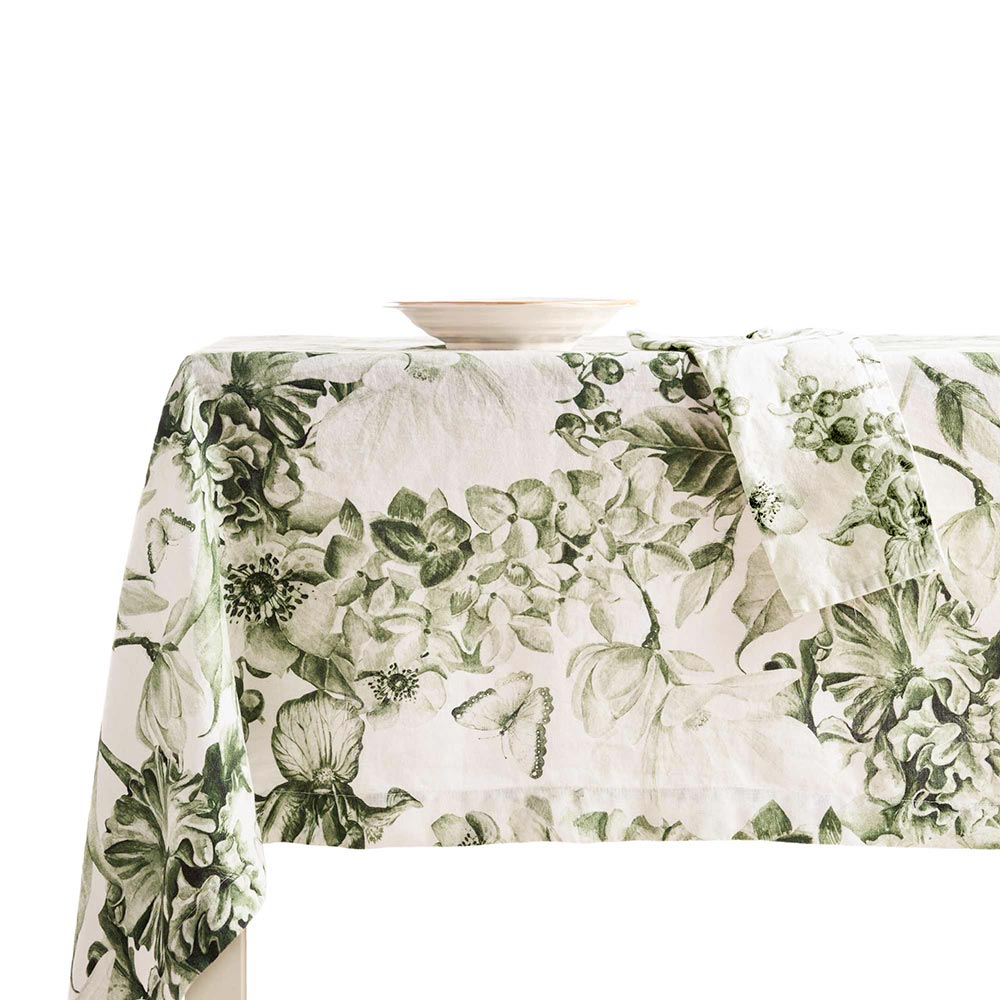 Dit bedrukte en garment-washed tafelkleed van puur linnen is een waar meesterwerk van elegantie en stijl. Het weelderige bloemenontwerp brengt een vleugje natuur en frisheid naar elke tafel, waardoor het ideaal is voor elke gelegenheid, van formele diners tot ontspannen familielunches. De kwaliteit van puur linnen, bekend om zijn duurzaamheid en weerstand , zorgt ervoor dat dit tafelkleed jarenlang een centraal element van uw tafel zal blijven.