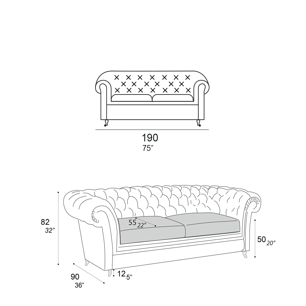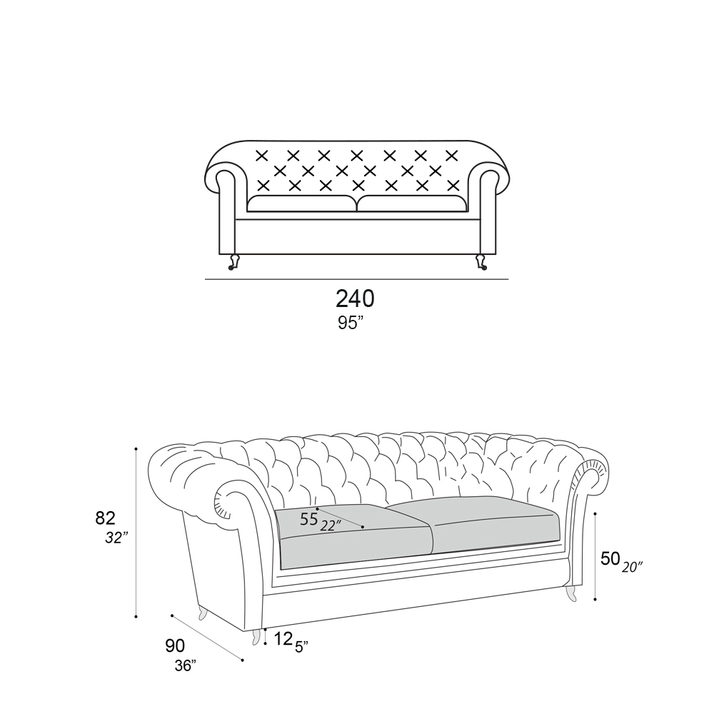 goud geverfde metalen wielen. De bank roept een klassieke essentie op met een eigentijdse twist. De solide structuur wordt gecombineerd met comfortabele kussens en elegante stoffering, verkrijgbaar in verschillende tinten. Het ontwerp heeft strakke lijnen en een laag silhouet, met slanke wieltjes die moderniteit toevoegen. Ideaal voor verfijnde ruimtes, het biedt uitnodigend comfort zonder afbreuk te doen aan stijl, waardoor het een verfijnde optie is voor woonomgevingen en contractruimtes zoals kantoren, hotels of exclusieve clublounges.