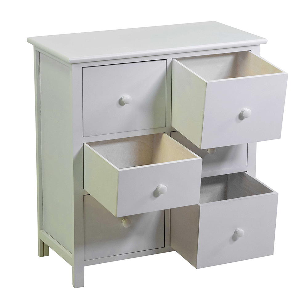 Met 6 laden biedt het een grote opbergruimte die perfect is voor het opbergen van alledaagse voorwerpen, keukengerei, textiel of documenten, zodat alles opgeruimd en uit het zicht blijft. De strakke lijnen en het minimale ontwerp maken het zeer veelzijdig: perfect voor woonkamers, slaapkamers, badkamers of inkomhallen.