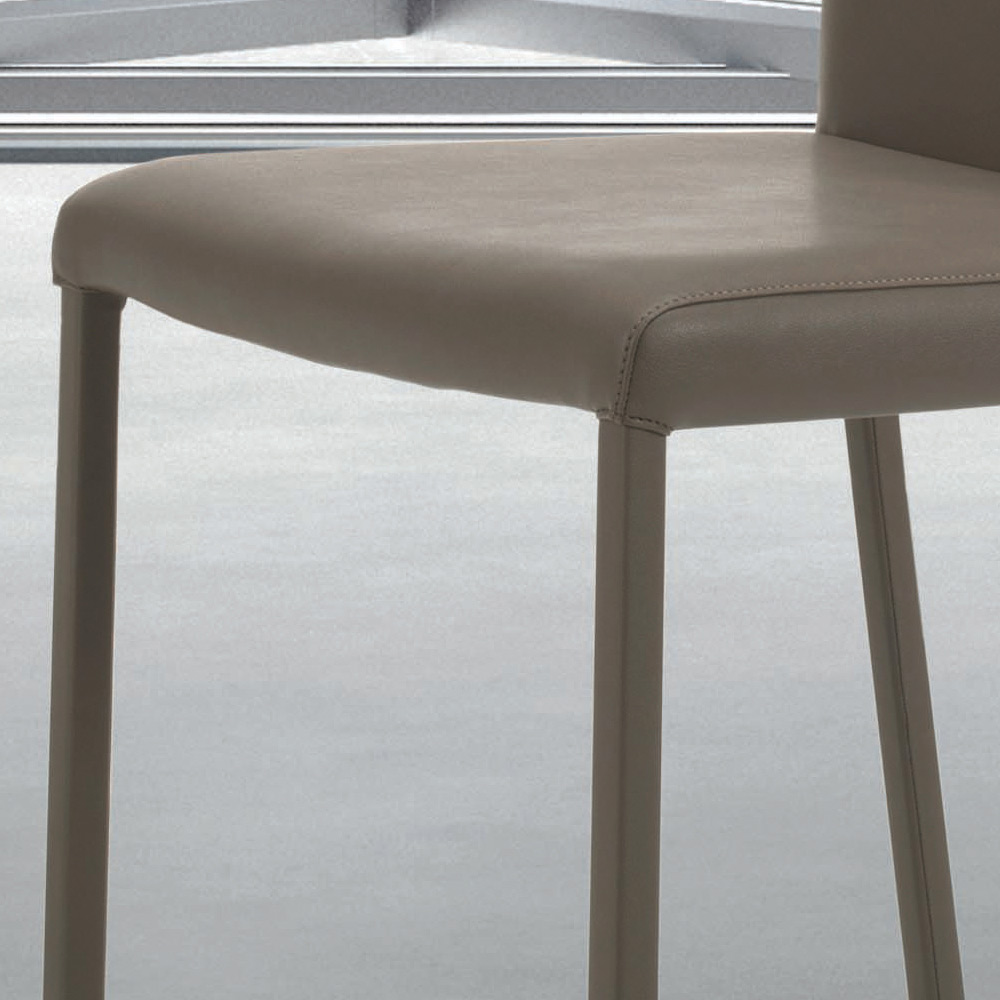 staal, volledig gevoerd en bekleed met ecoleer. Essentialiteit en minimalisme zijn de onderscheidende kenmerken van deze eigentijdse inrichtingsstijl, ontworpen voor liefhebbers van eenvoudig maar visueel indrukwekkend meubilair. De schoonheid en lichtheid van de vormen zijn de grootste troeven, waardoor het in elke situatie kan worden geïntegreerd en altijd uniek en origineel blijft.