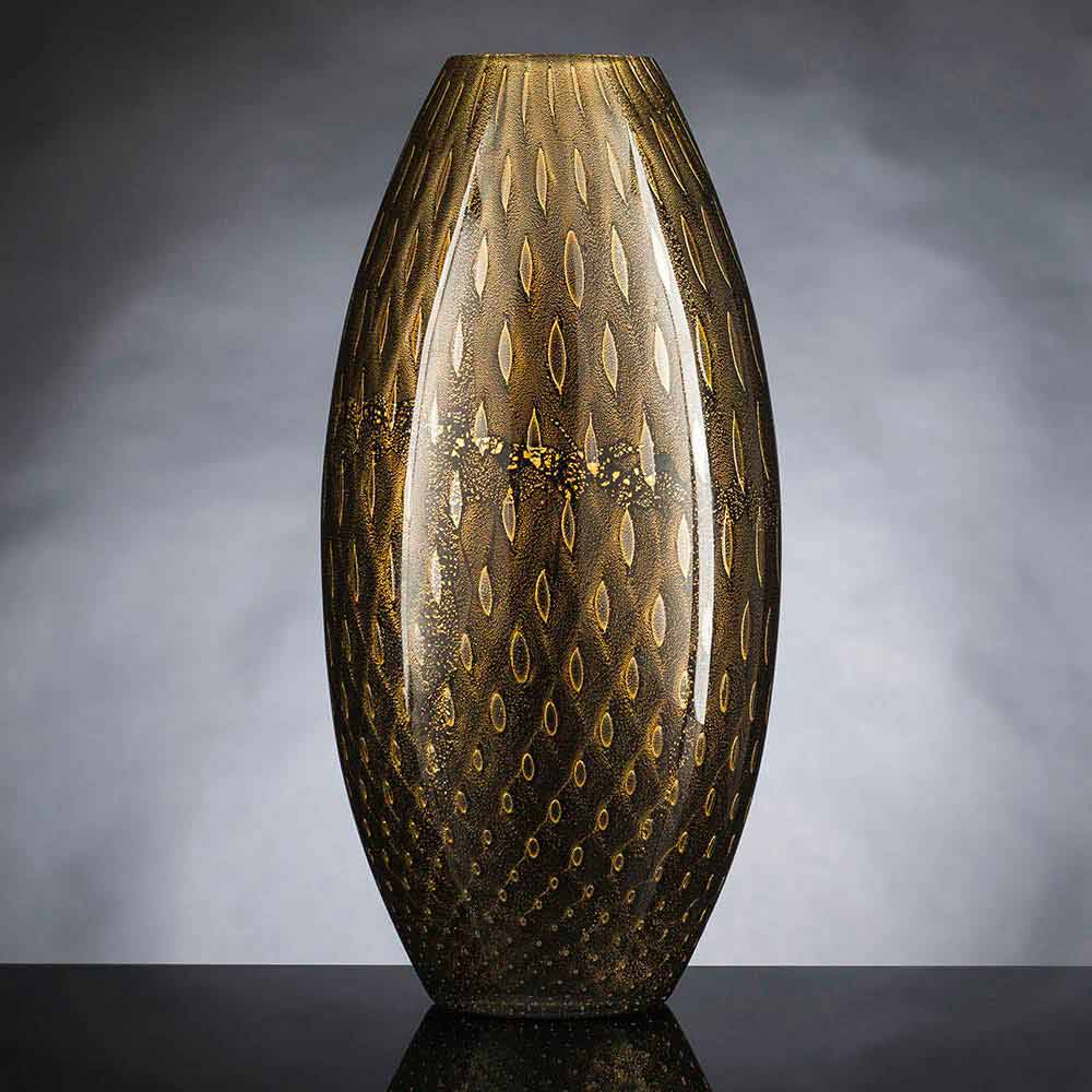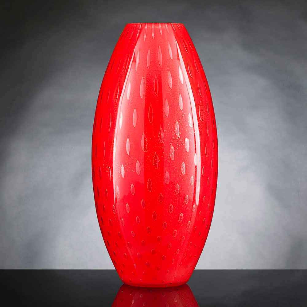 Moderne decoratieve vaas in gekleurd Murano geblazen glas Made in Italy.