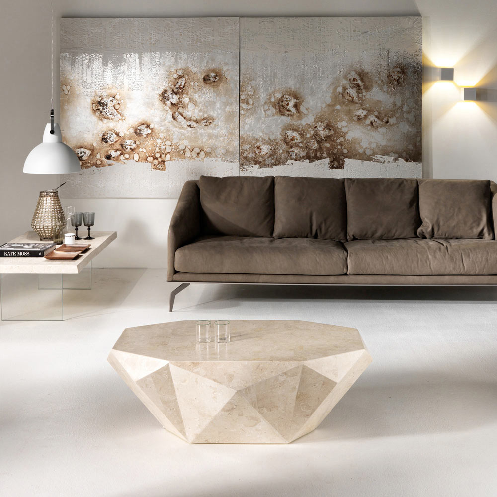 De salontafels uit de Fossil Stone collectie zijn uniek doordat ze gemaakt zijn van echte fossiele steen . Dit kostbare materiaal is het resultaat van de natuurlijke processen die plaatsvonden in de tijdperken en millennia na de schepping van de aarde.