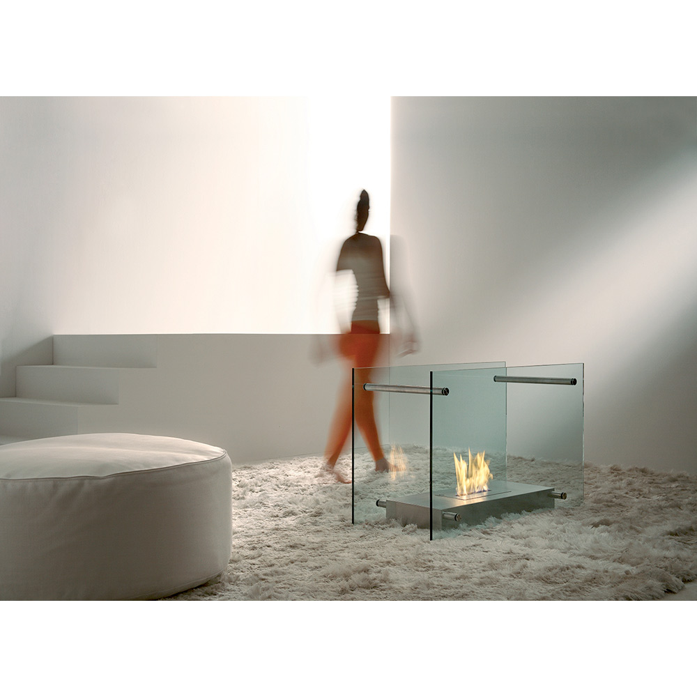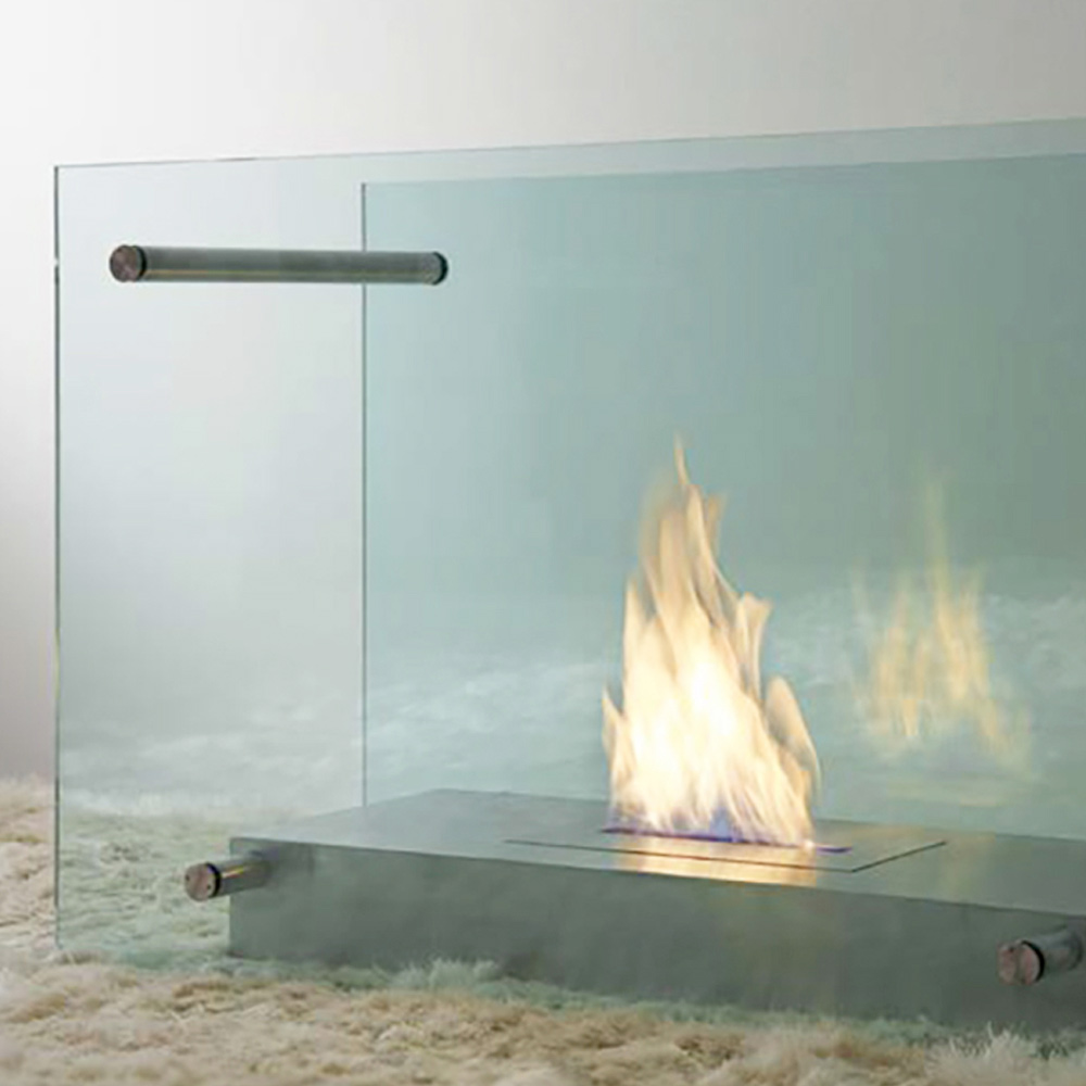 Elegant en verleidelijk, deze biohaard voor binnen is een intrigerend spel van volumes en transparanties dat dankzij de esthetische lichtheid van het glas in het
