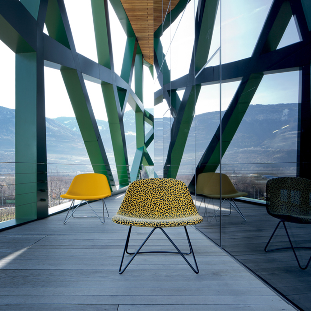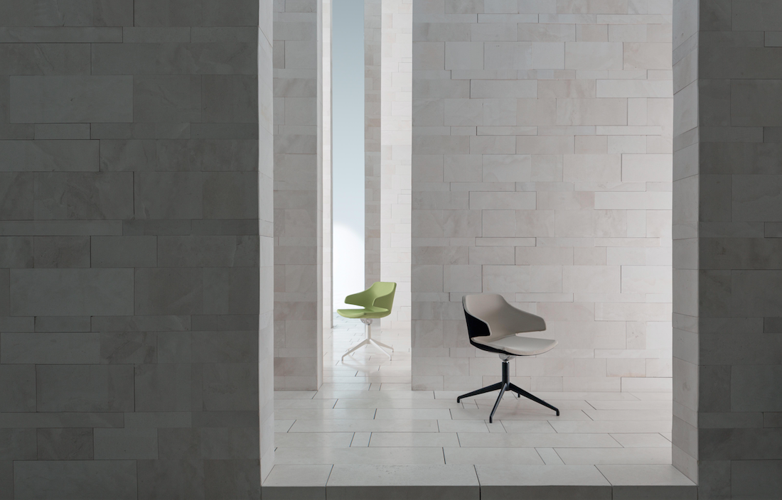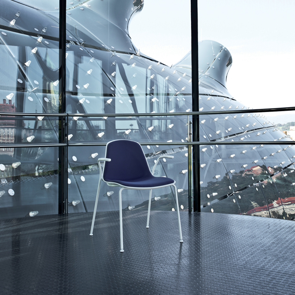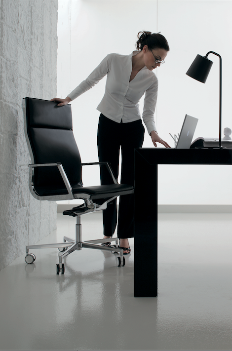 Het frame, verkrijgbaar in twee rugleuninghoogtes, hoog en medium, laat veel verchroomde aluminium componenten vloeien en wordt ondersteund door 4-5-weg bases, of in de sledeversie. Drie hoezen: één comfortabel met grote vulling, de tweede in mesh en de derde - het kroonjuweel van het assortiment - met platte vulling met naadloze groeven dankzij thermovorming.