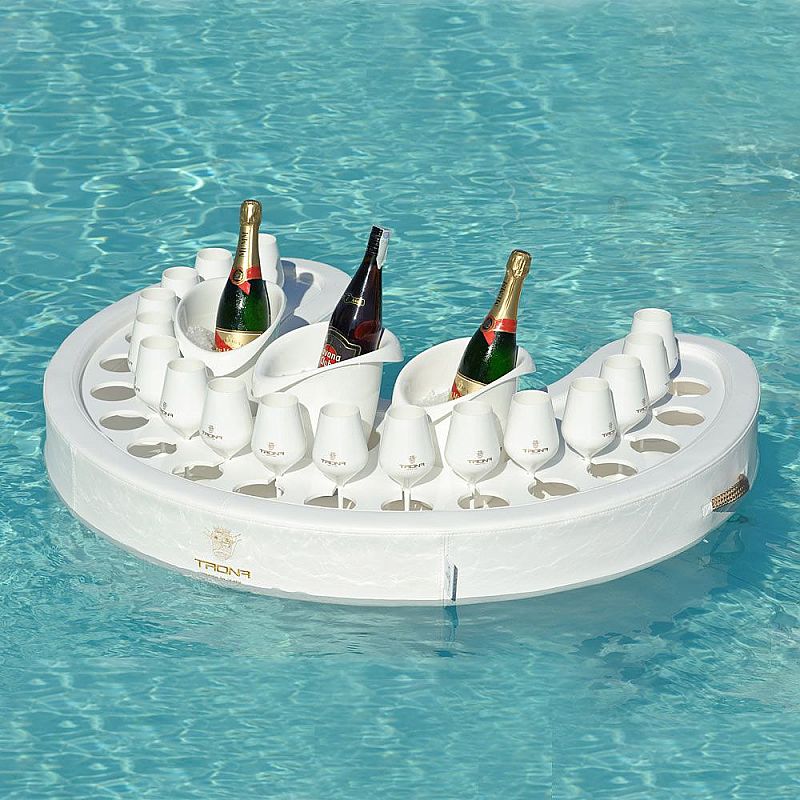Nieuwe zomertrends om zowel op het strand als in het zwembad plezier te hebben. Zwevende fauteuils en zwevende bars gemaakt van nautisch eco-leer om feesten met vrienden te organiseren.