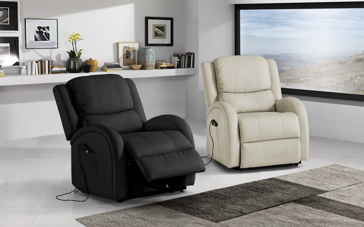 Relax fauteuils met één motor , hebben de klassieke gesynchroniseerde beweging, die eerst de voetsteun activeert en deze in een horizontale positie brengt, en vervolgens de rugleuning achterover leunt, natuurlijk is er een personenliftsysteem.
