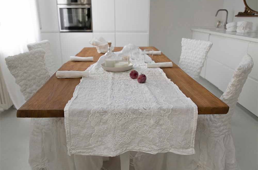 Linnen is elegant en verleidelijk. Uniek en onmiskenbaar. Altijd een symbool van prestige en adel. Het betovert degenen die een goede smaak hebben en weten op te vallen. Het uiterlijk is altijd nieuw en helder. De plooien geven een spel van licht en schaduw. Ze zijn de manifestatie van het sterke en natuurlijke karakter van "levende" stof.