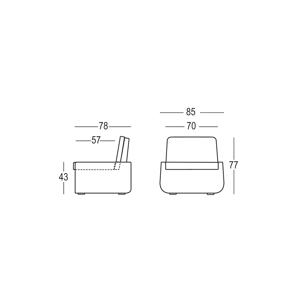 ondoorzichtig polyethyleen dat wordt gekenmerkt door een uitstekende weerstand tegen de zon, hitte en schokken. Dankzij het moderne en elegante ontwerp is deze fauteuil de ideale oplossing voor omgevingen die een verfijnde toets nodig hebben zonder het functionele aspect van comfort te verwaarlozen.