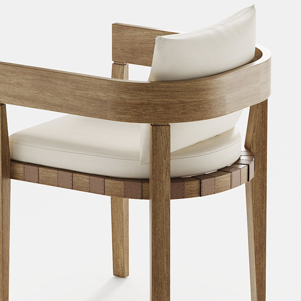 verweerde teakhouten structuur. De fauteuil is versierd met