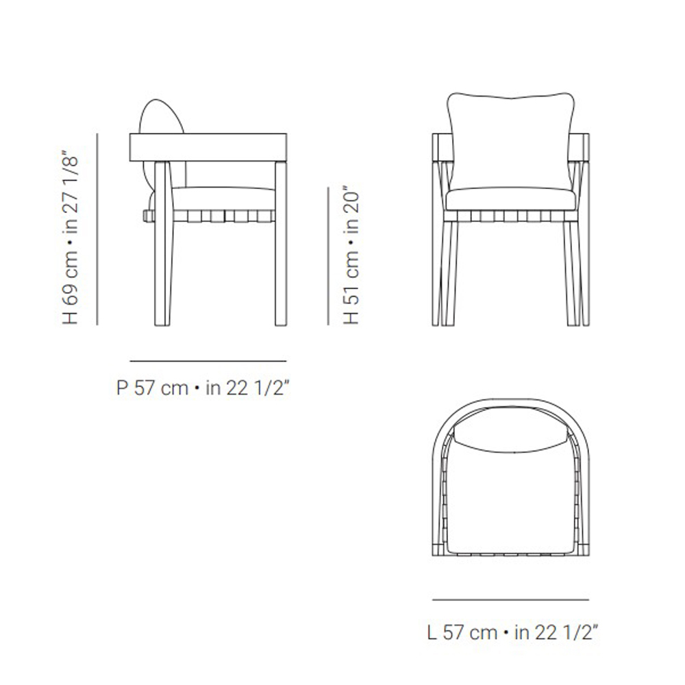 Buitenfauteuil van teakhout met zitting en rugleuning van gewatteerd kussen Gemaakt in Italië