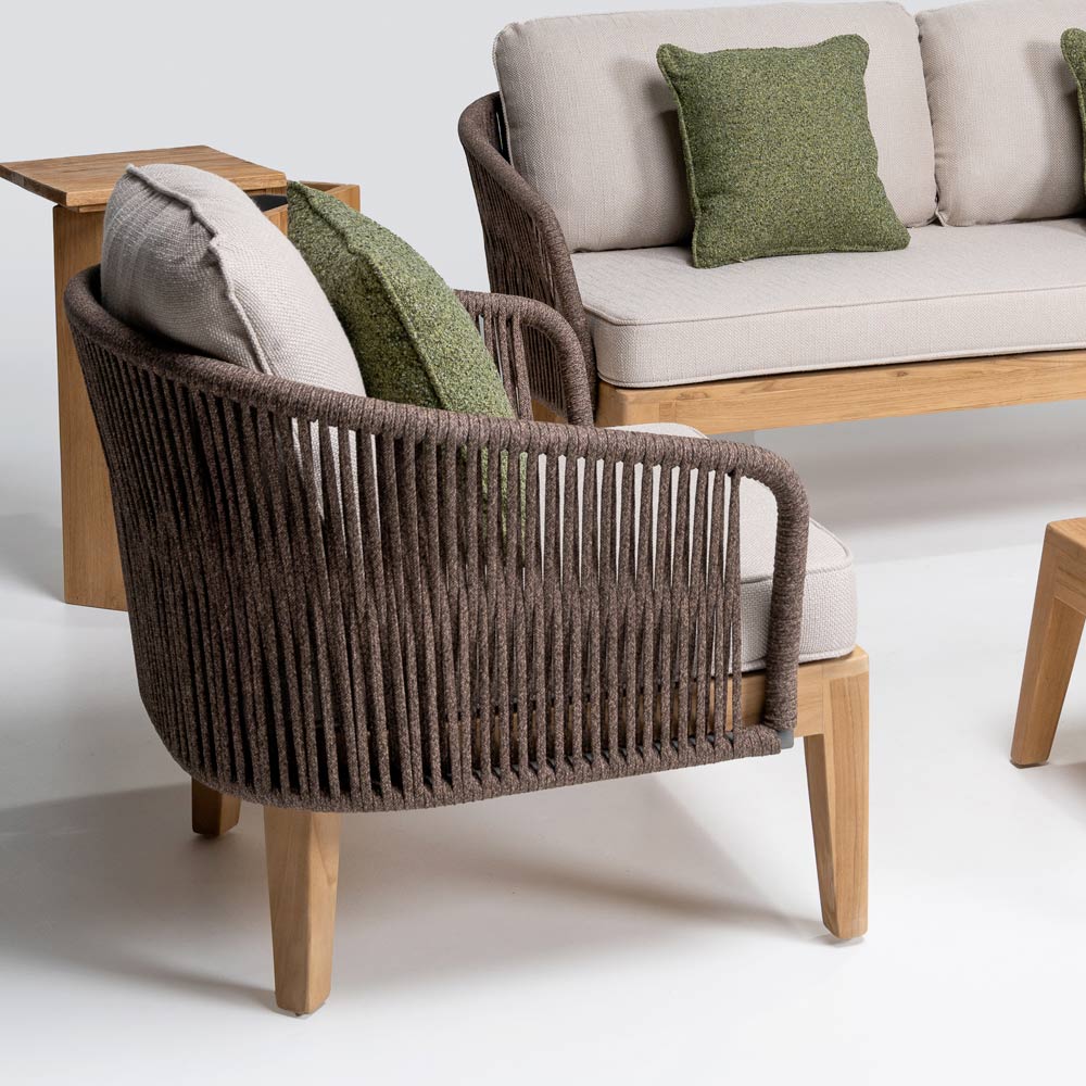 - woestijnmixkleur touwweefsel + havana grijze zit-/rugkussens