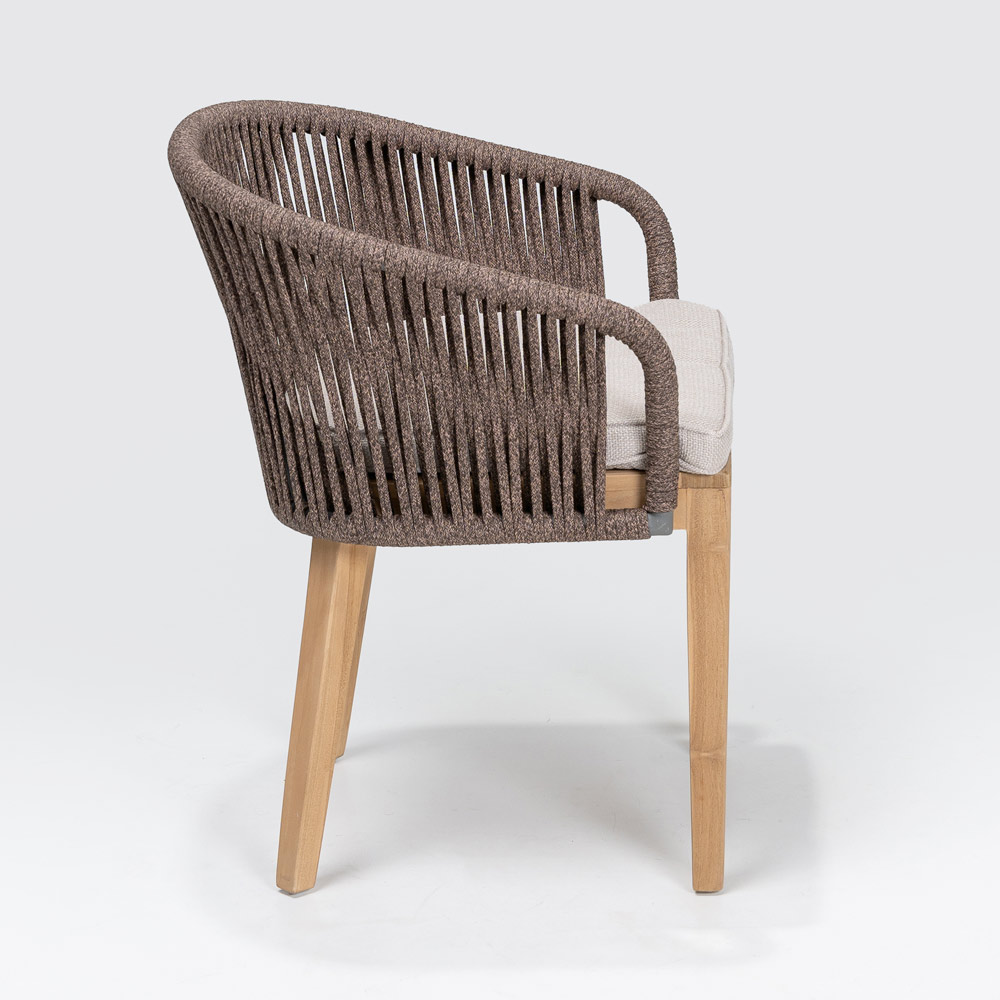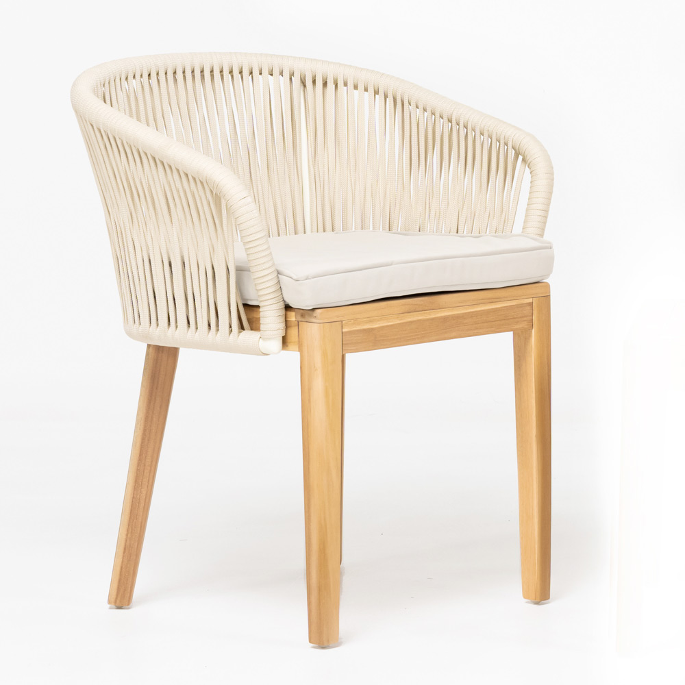 Outdoor fauteuil in teakhout en polyethyleen vlechtwerk.