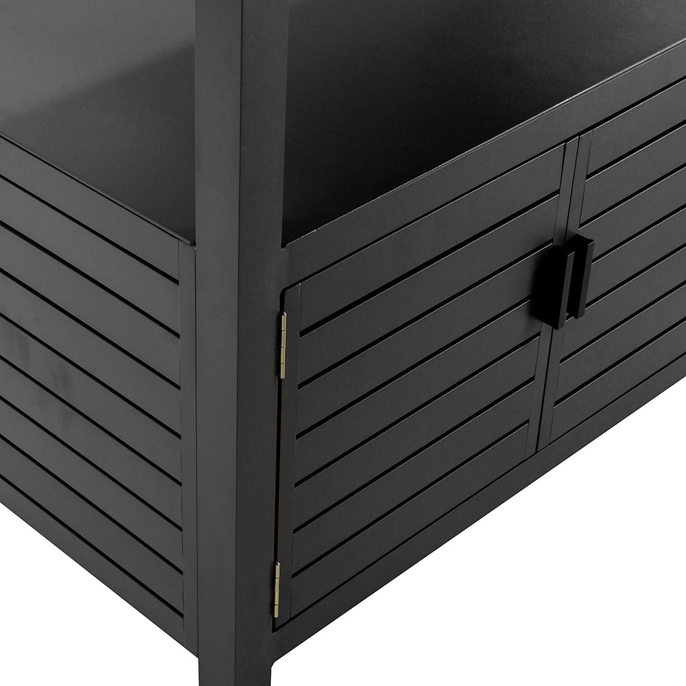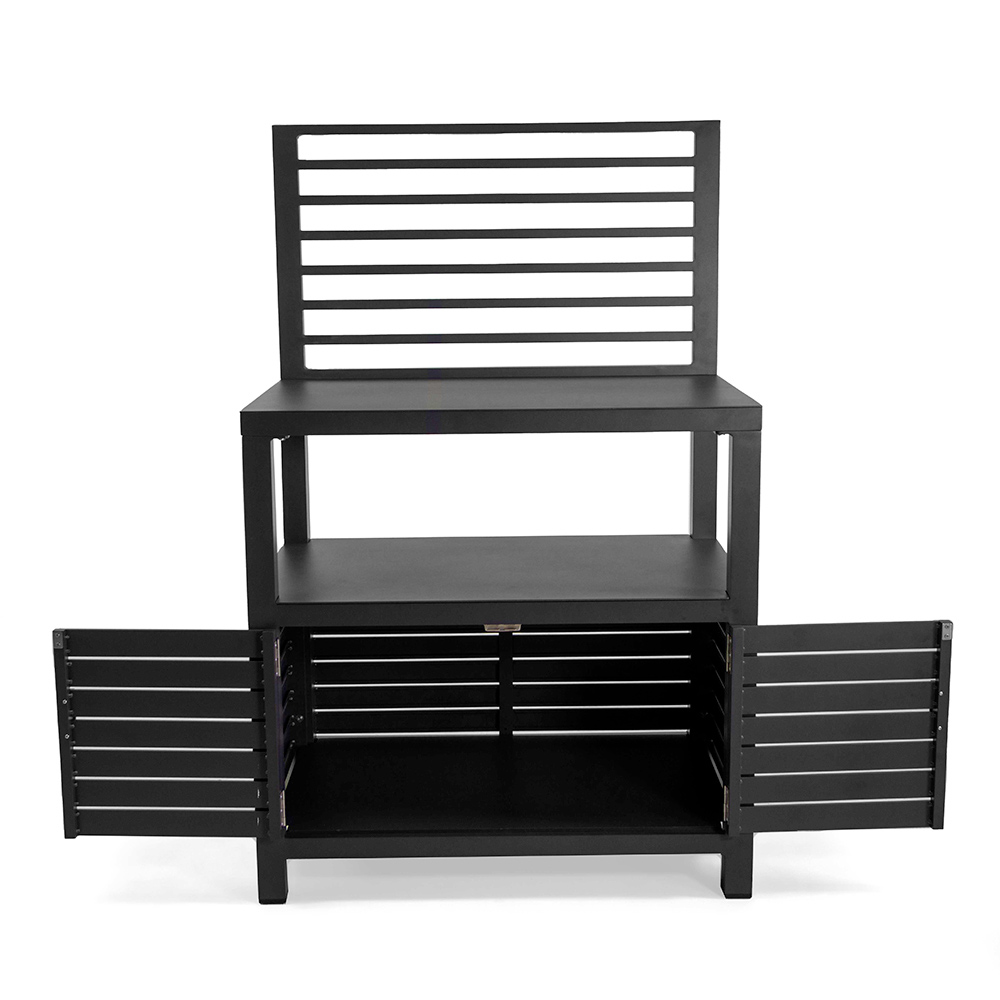 Het stevige aluminium frame zorgt voor weerbestendigheid en duurzaamheid, terwijl het latten ontwerp een vleugje verfijning toevoegt. Dit dressoir is niet alleen een praktische aanvulling, maar ook een decoratief stuk dat de elegantie van uw leefruimte buiten zal verbeteren.