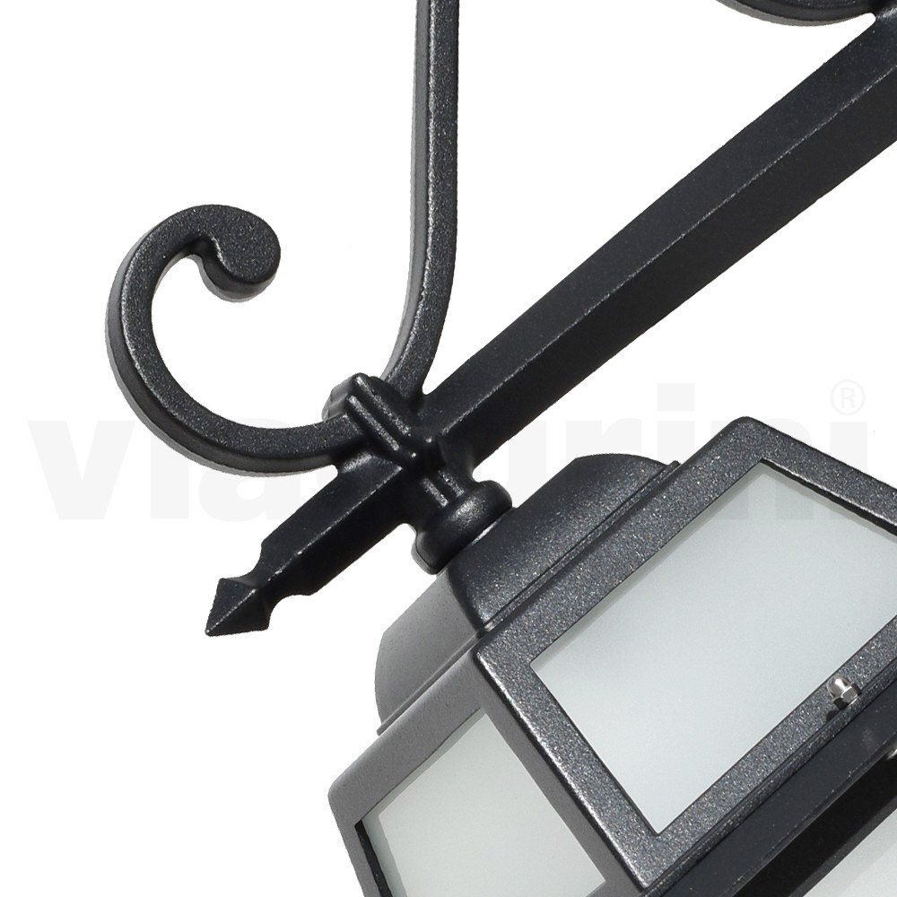 Tuinlamp gemaakt met antraciet afgewerkte gegoten aluminium structuur en gezandstraalde glazen diffuser, volledig gemaakt in Italië.