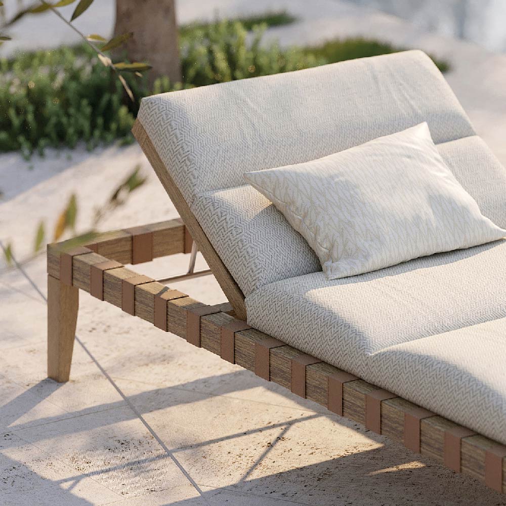 Ligstoel van teakhout met kussens van gewatteerde stof, gemaakt in Italië