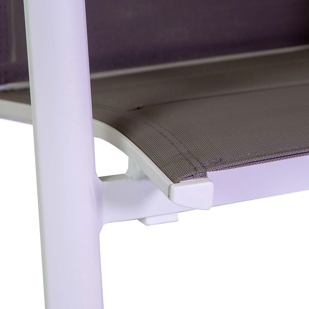 Deze tuinstoel combineert moderne elegantie en ongeëvenaard comfort , ideaal voor elke buitenruimte. Het heeft een aluminium frame , opmerkelijk voor zijn duurzaamheid en onderhoudsgemak , in combinatie met een textilene zitting en rugleuning die comfort en weerstand tegen weersinvloeden garanderen.