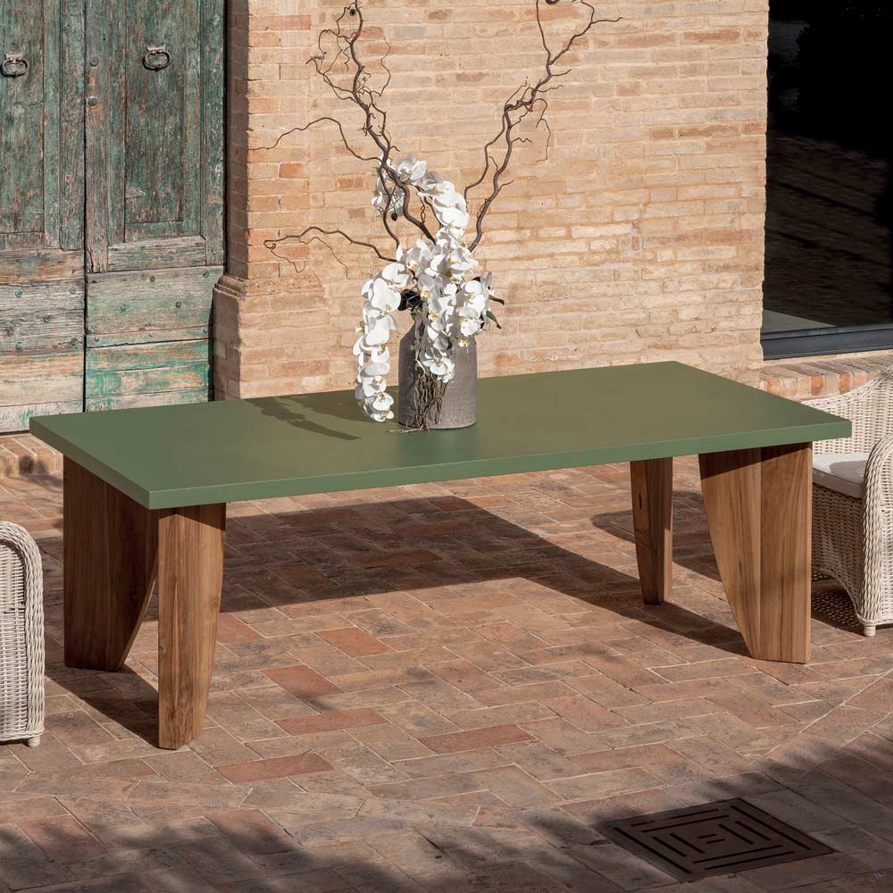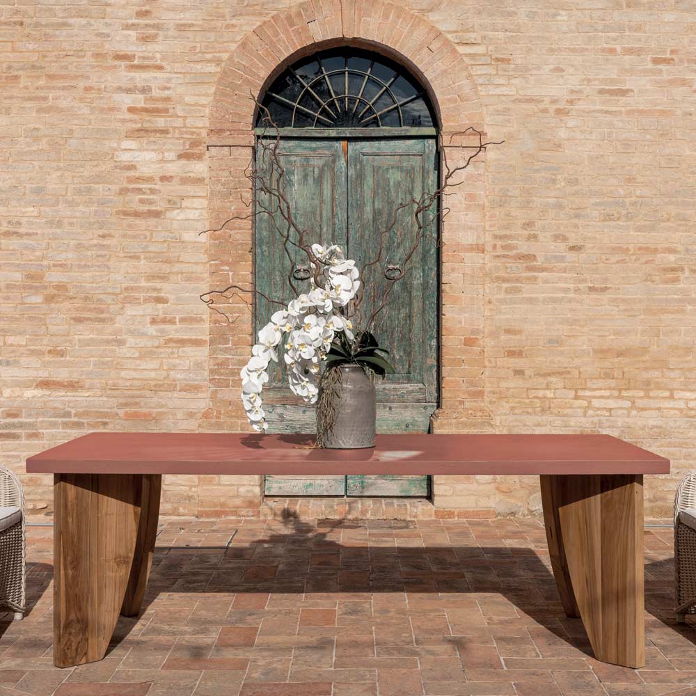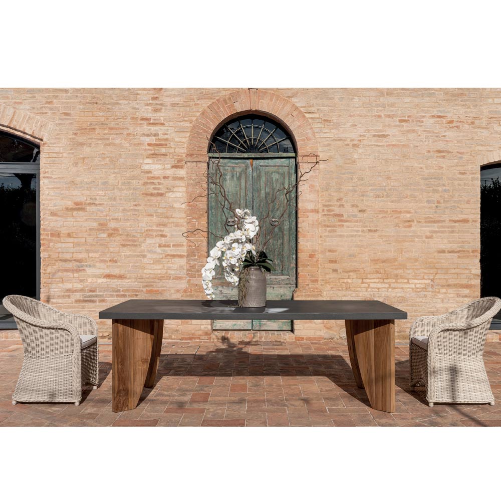 Binnen- en buitentafel van okumé multiplex en teakhout Gemaakt in Italië