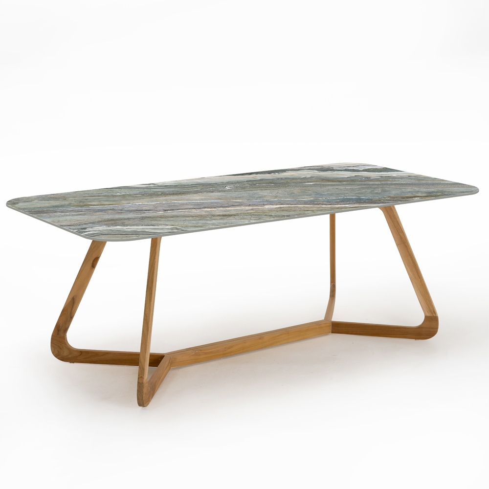 Rechthoekige tuintafel van hout en keramiek, Made in Italy