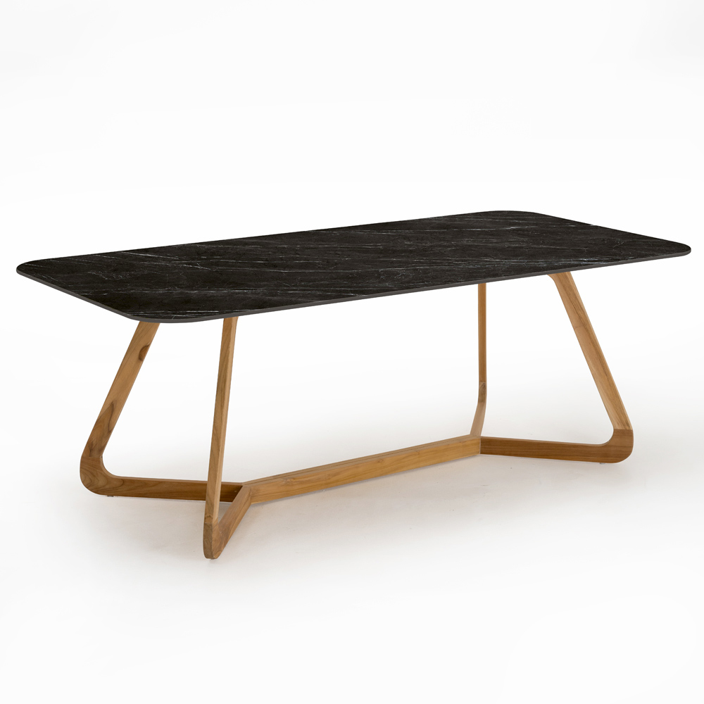 Rechthoekige tuintafel van hout en keramiek, Made in Italy