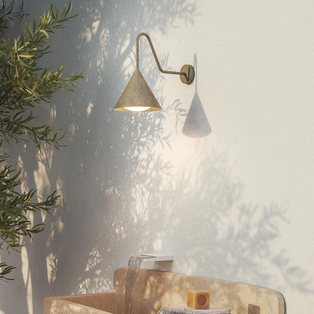 Buitenwandlamp in antiek messing en wit glas Made in Italy
