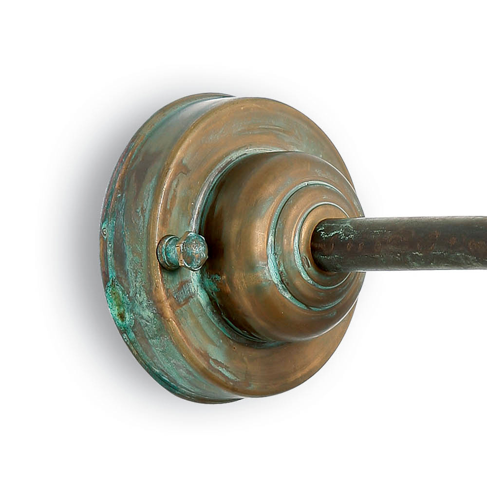 Deze buitenwandlamp combineert op perfecte wijze ambachtelijke traditie met tijdloze elegantie . De messing structuur , met antieke afwerking , geeft het geheel een warme en robuuste uitstraling, ideaal om buitenruimtes met een klassieke , rustieke of industriële chique stijl te verfraaien.