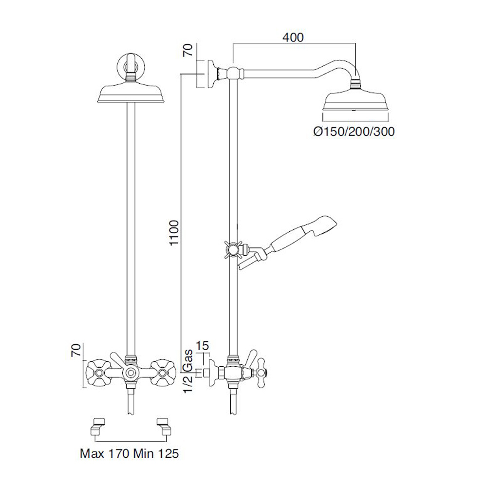 Klassieke stijl duplex douchegroep in handgemaakt messing gemaakt in Italië