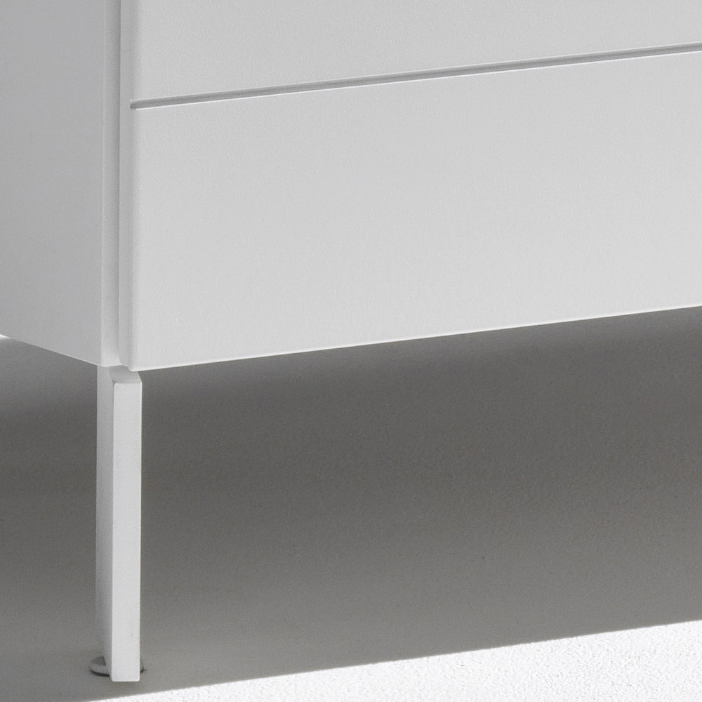 De structuur is gemaakt van geverfd spaanplaat , terwijl de ladefronten van MDF zijn afgewerkt met hoogwaardige polyurethaanverf , voor een resistent, egaal en duurzaam oppervlak.