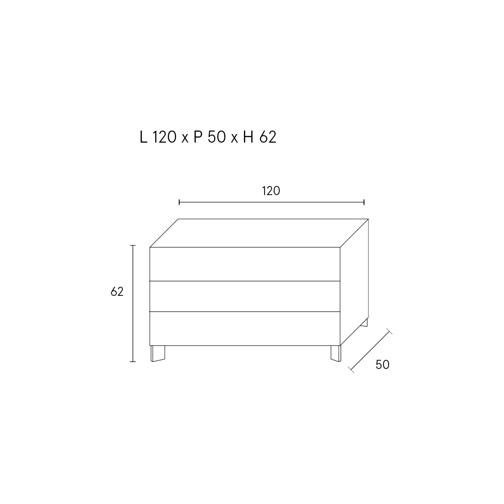 De commode is voorzien van 3 grote lades , ideaal voor het opbergen van beddengoed en persoonlijke spullen, waardoor functionaliteit en orde gegarandeerd zijn zonder afbreuk te doen aan de esthetiek.