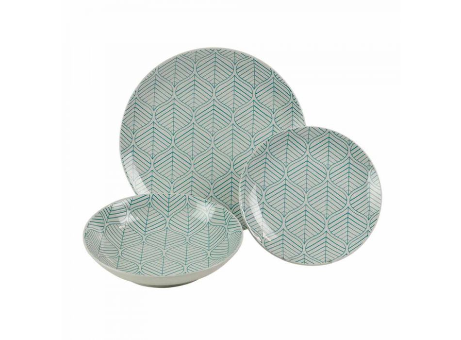 Het servies bestaat uit 6 platte borden, 6 diepe borden, 6 fruitborden