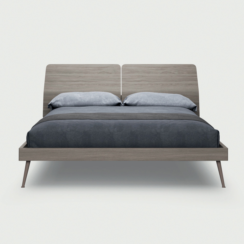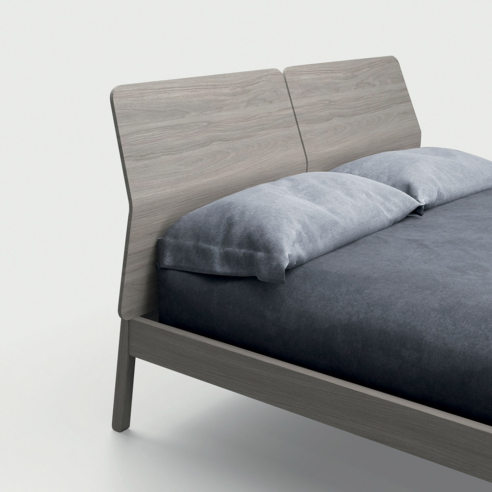 eenvoudige vormen die met elkaar verweven zijn om een idee van hedendaags meubilair te creëren, opnieuw bekeken in een romantische stijl. De bijzondere vorm van het hoofdeinde van het bed verrijkt de esthetiek van