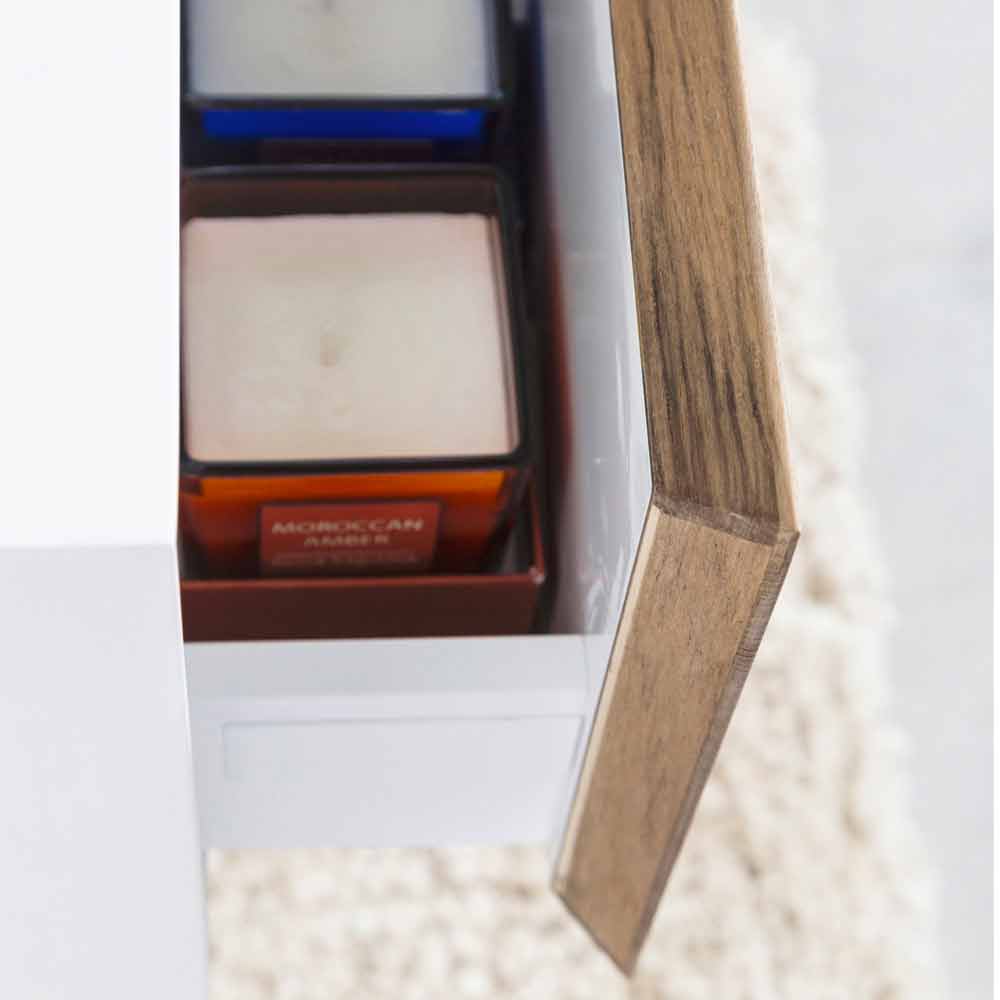 Hangende badkamerkast in Teak en Hi Macs® Birma Teak en zijn zachte en warme tinten ontmoeten de etherische witheid van