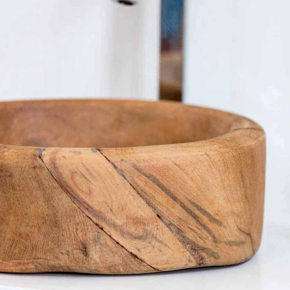 Teak wastafel Natuurlijk en gepolijst teak in een essentiële en praktische vorm. Onbehandeld hout geeft de geuren en kleuren van tropische bossen terug.