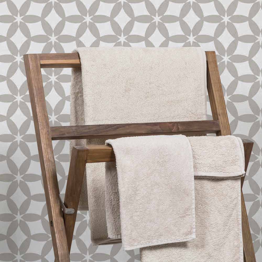 Houten handdoekhouder Vrijstaande afsluitbare handdoekhouder in natuurlijk teakhout.
