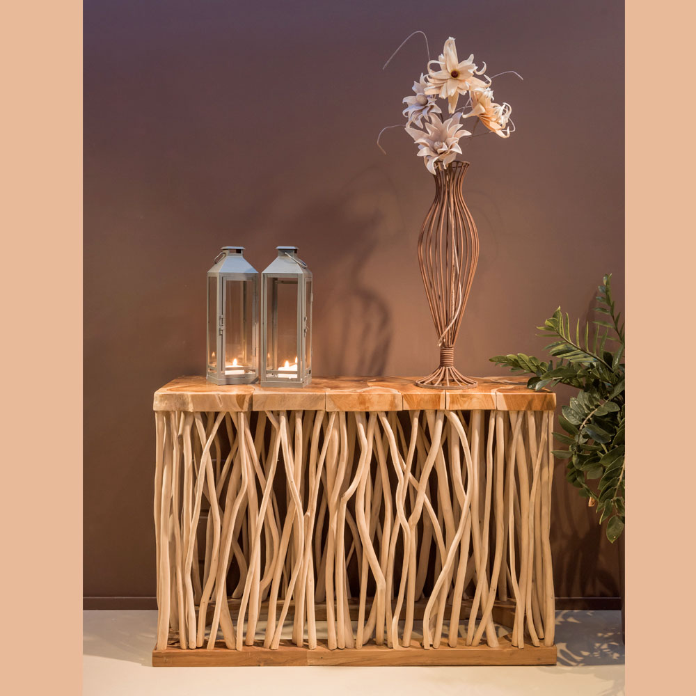 Het vakmanschap en het gebruik van hout in zijn meest authentieke vorm maken van elke consoletafel een uniek stuk, waarin de nerf en natuurlijke onregelmatigheden elementen van grote esthetische waarde worden.