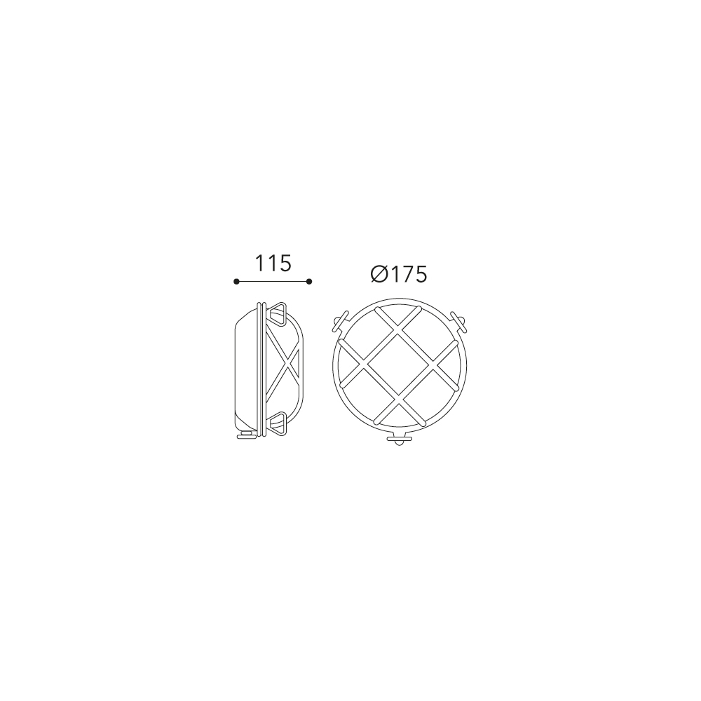 De ronde diffuser van opaalglas wordt beschermd door een robuust metalen rooster dat doet denken aan de maritieme en industriële wereld, en tegelijkertijd veiligheid en duurzaamheid garandeert. Het licht is functioneel en omhullend , perfect voor het verlichten van gevels , ingangen , buitentrappen en buitenruimtes .