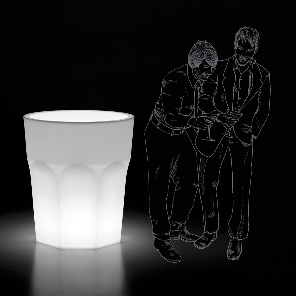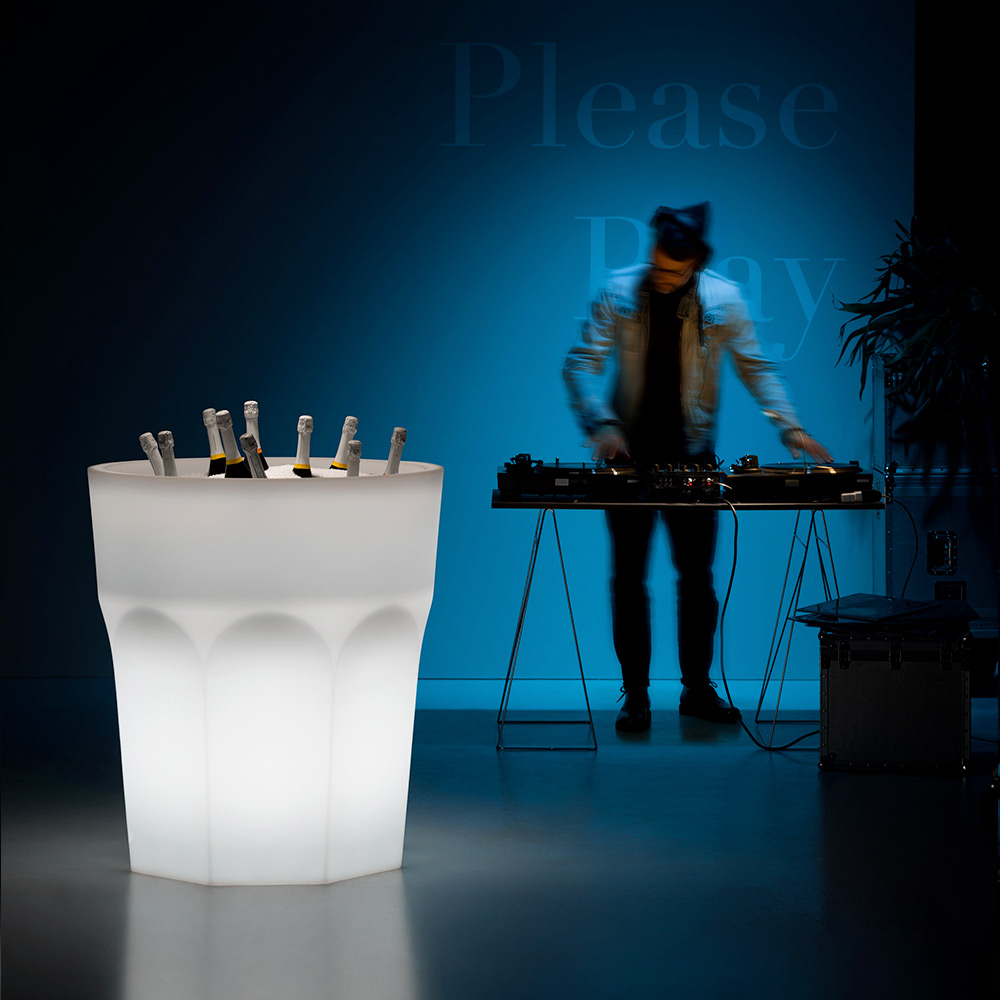 Lichtgevende decoratieve design vaas in polyethyleen met LED-licht Made in Italy.