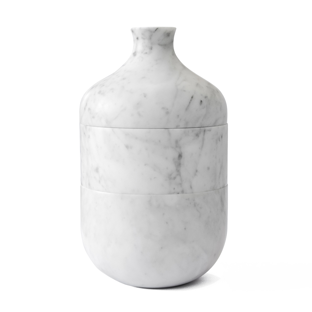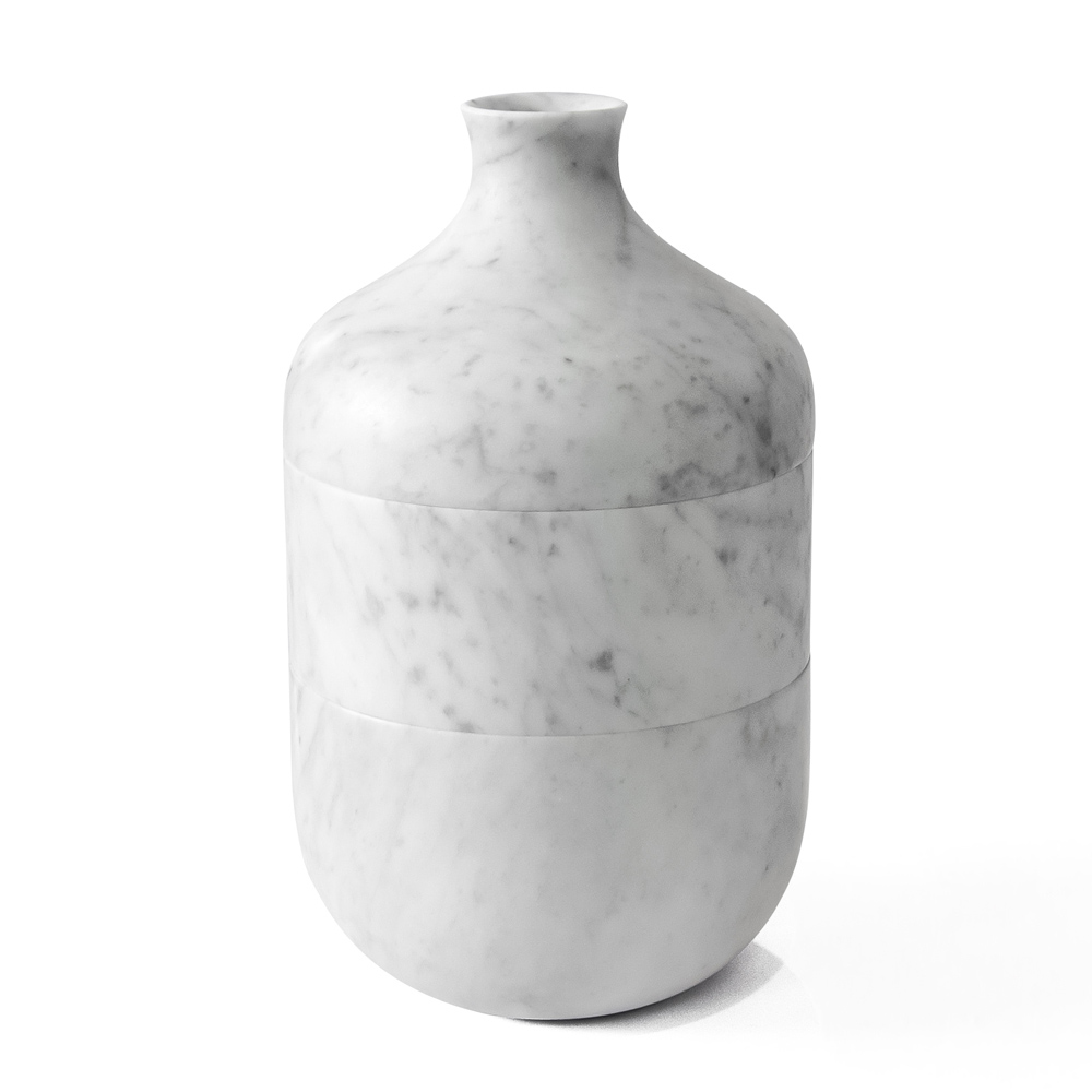 Decoratieve vaas in wit Carrara marmer design in 3 delen gemaakt in Italië.