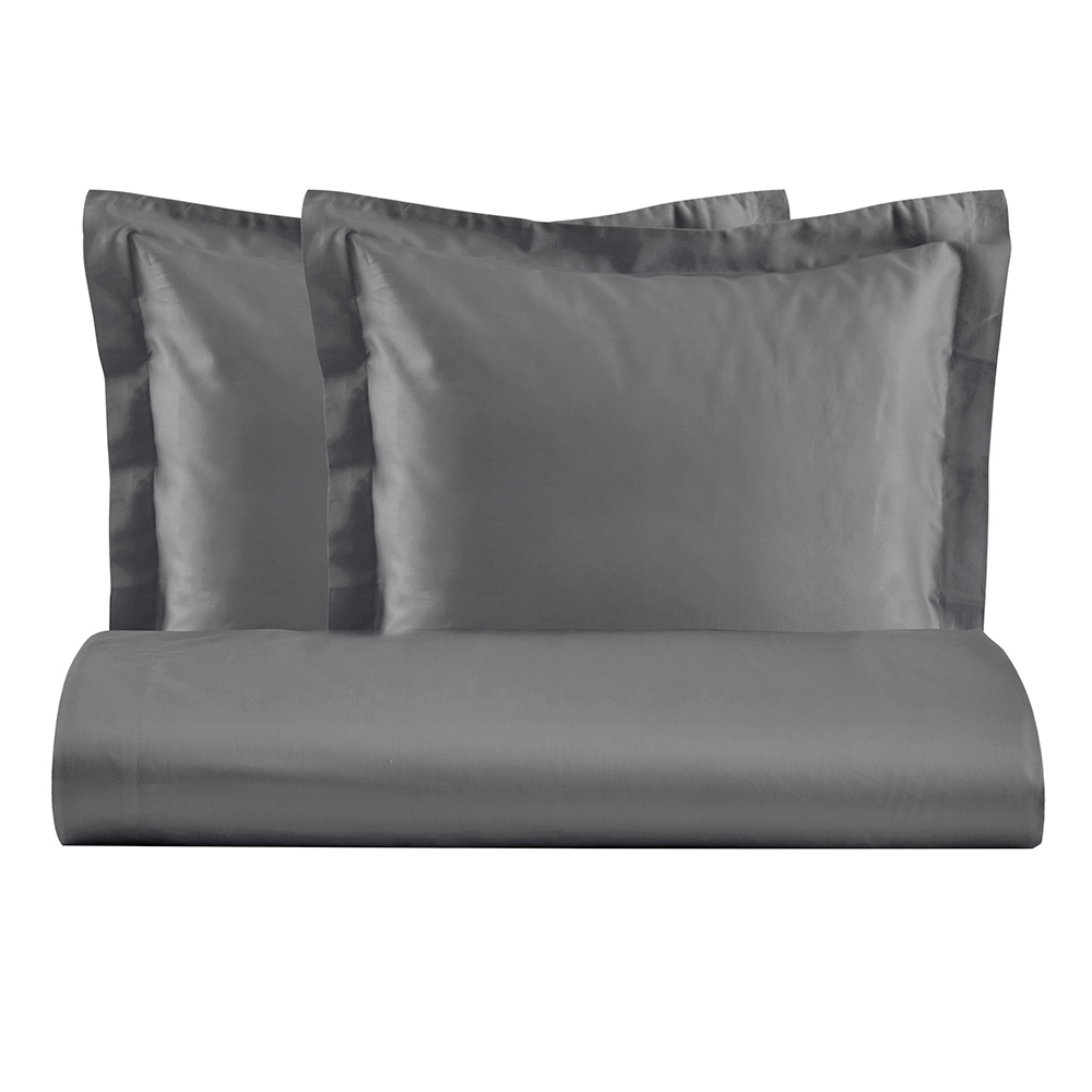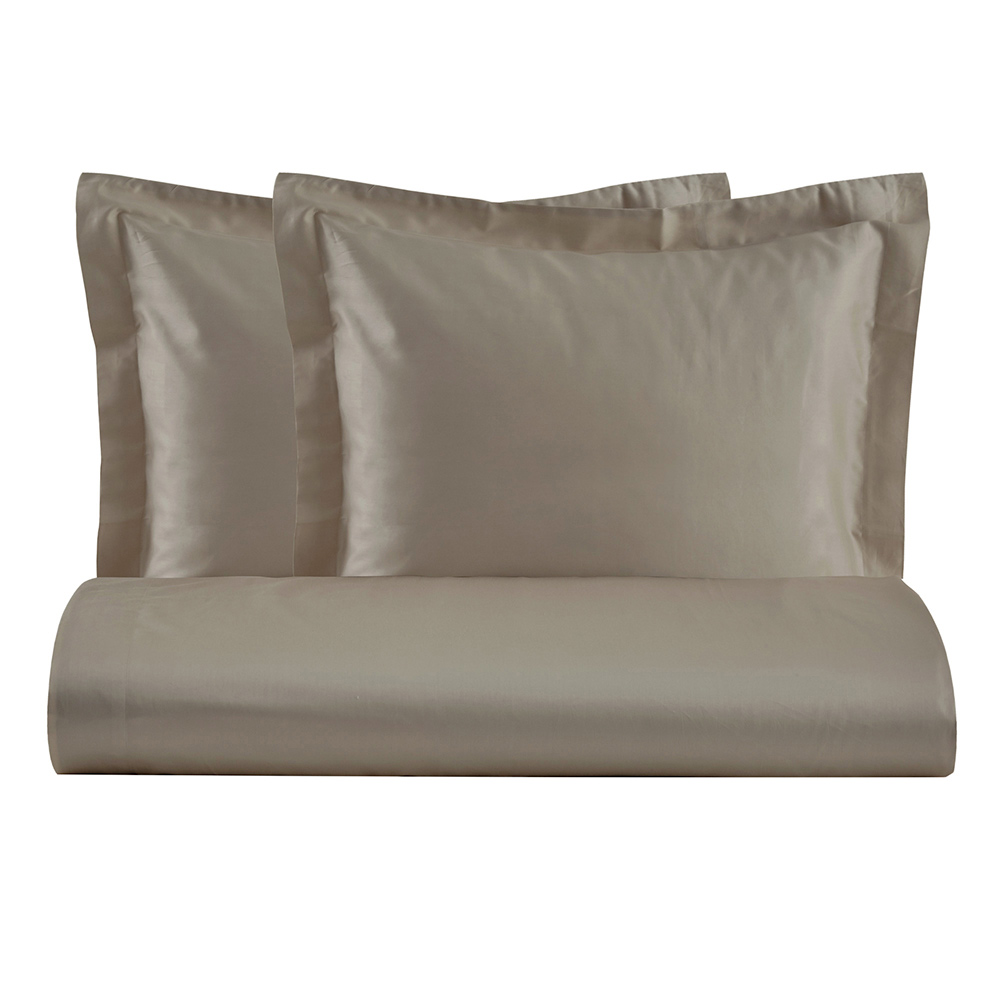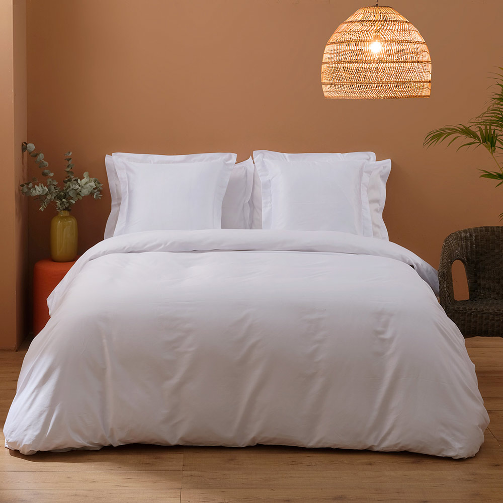 Elegant en verfijnd, het eenvoudige maar verfijnde ontwerp van deze bedset past perfect bij elke stijl van decor, van moderne tot meer klassieke slaapkamers, en tilt de uitstraling van de kamer op met een gevoel van pure elegantie . De kwaliteit van de stof zorgt niet alleen voor een uitzonderlijke duurzaamheid , bestand tegen veelvuldig wassen zonder zijn charme te verliezen, maar bevordert ook de ademende werking , wat essentieel is voor een optimale nachtrust.