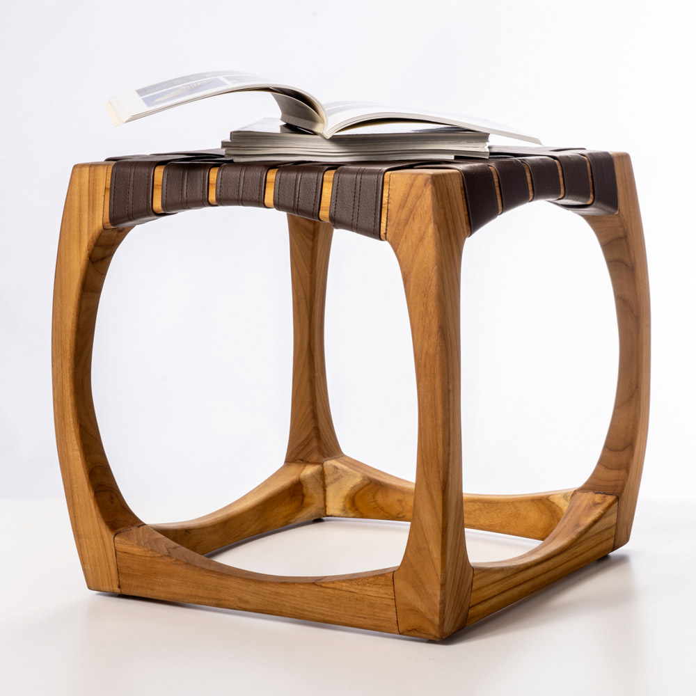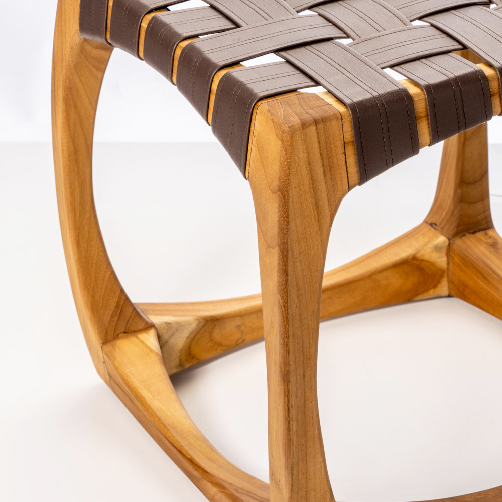 Deze badkamerkruk is een waar meesterwerk van design en functionaliteit. De gebogen structuur van massief teak getuigt van vakkundig vakmanschap en biedt ongeëvenaarde stabiliteit, terwijl het leerweefsel van de zitting niet alleen een vleugje elegantie toevoegt, maar ook zorgt voor een comfortabele zit. Met zijn royale afmetingen dient deze kruk niet alleen als zitplaats, maar ook als steunvlak voor persoonlijke spullen zoals beautycases of badkameraccessoires. Het is een veelzijdig stuk dat perfect in elke badkamer past en functionaliteit en een onberispelijke stijl combineert.
