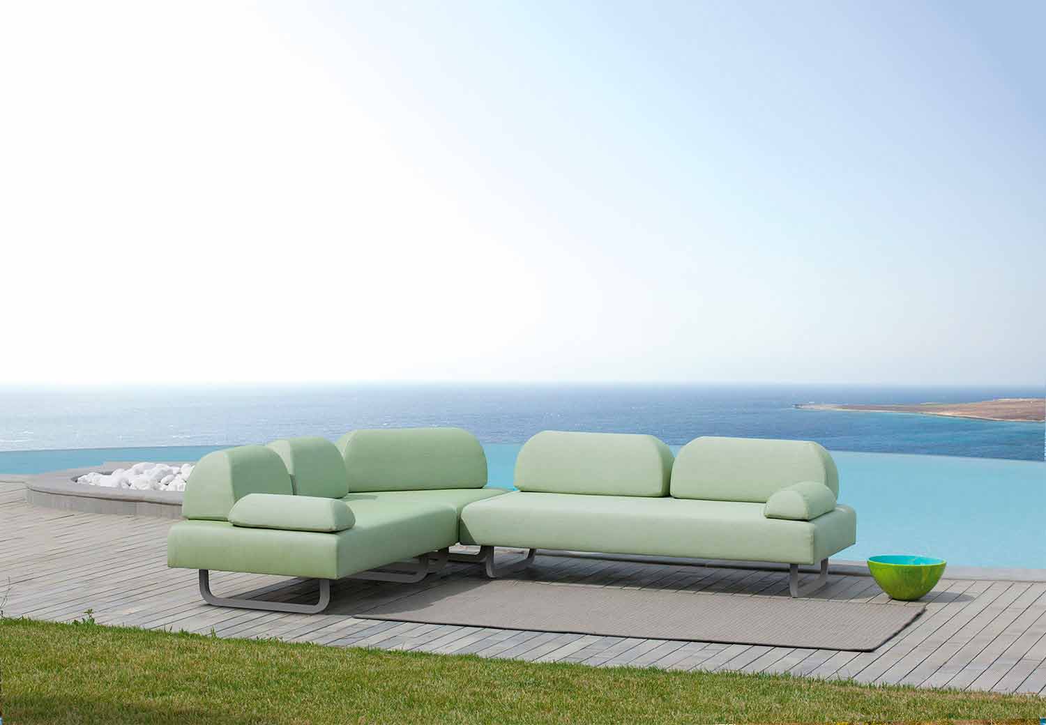 bestand te zijn tegen weersinvloeden , vlekken, schimmel en uv-straling. De poten zijn daarentegen gemaakt van gepoedercoat gegalvaniseerd ijzer, geverfd met thermohardend poeder in een matte afwerking.