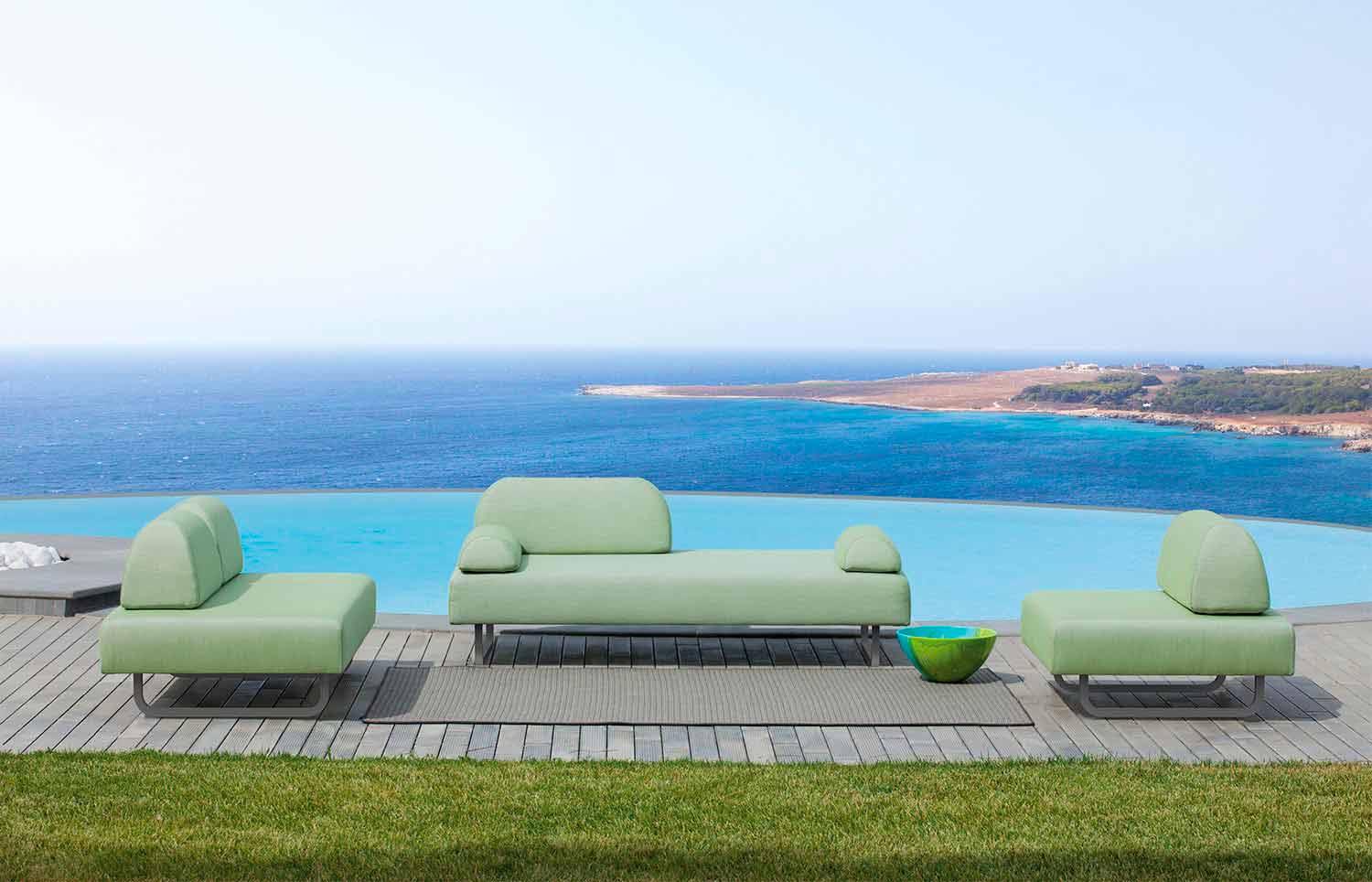 Design ligstoel voor buiten, gemaakt van gepoedercoat gegalvaniseerd ijzer en 100% geverfd acryl. Gemaakt in Italië.
