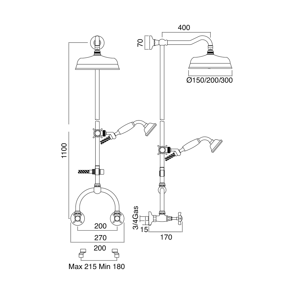 - B 27 x D 40 x H 110 cm Ø douchekop 20 cm;