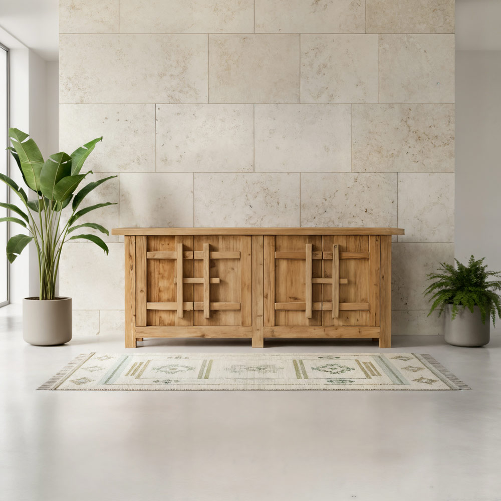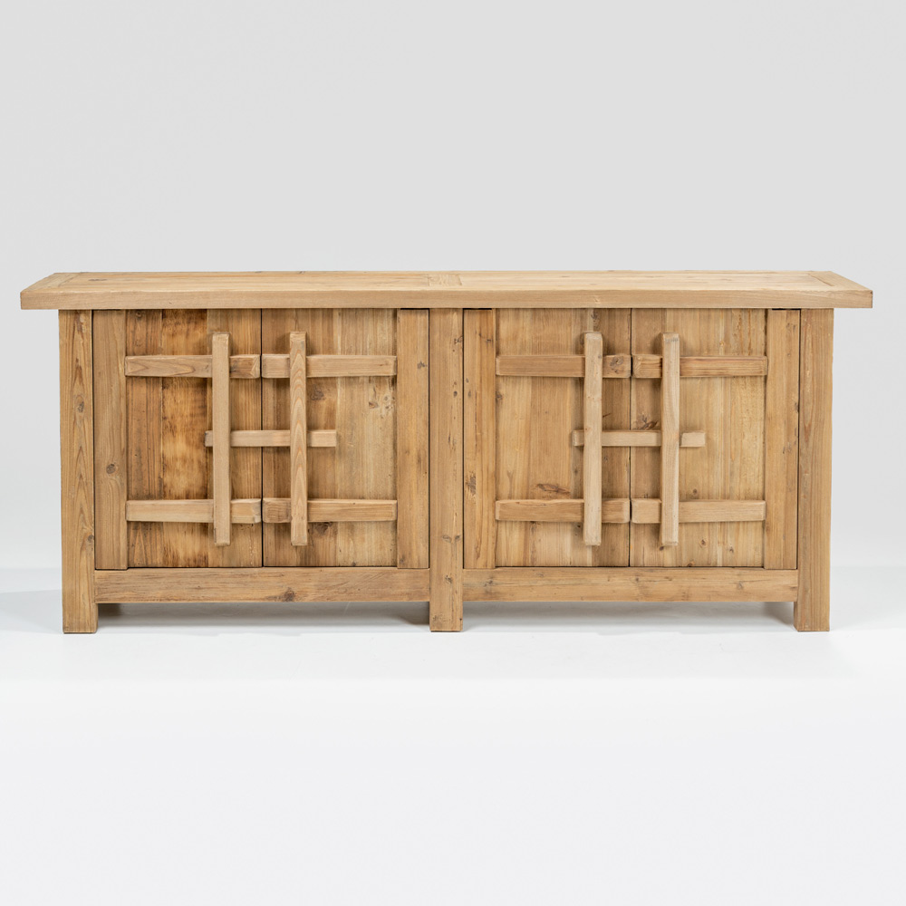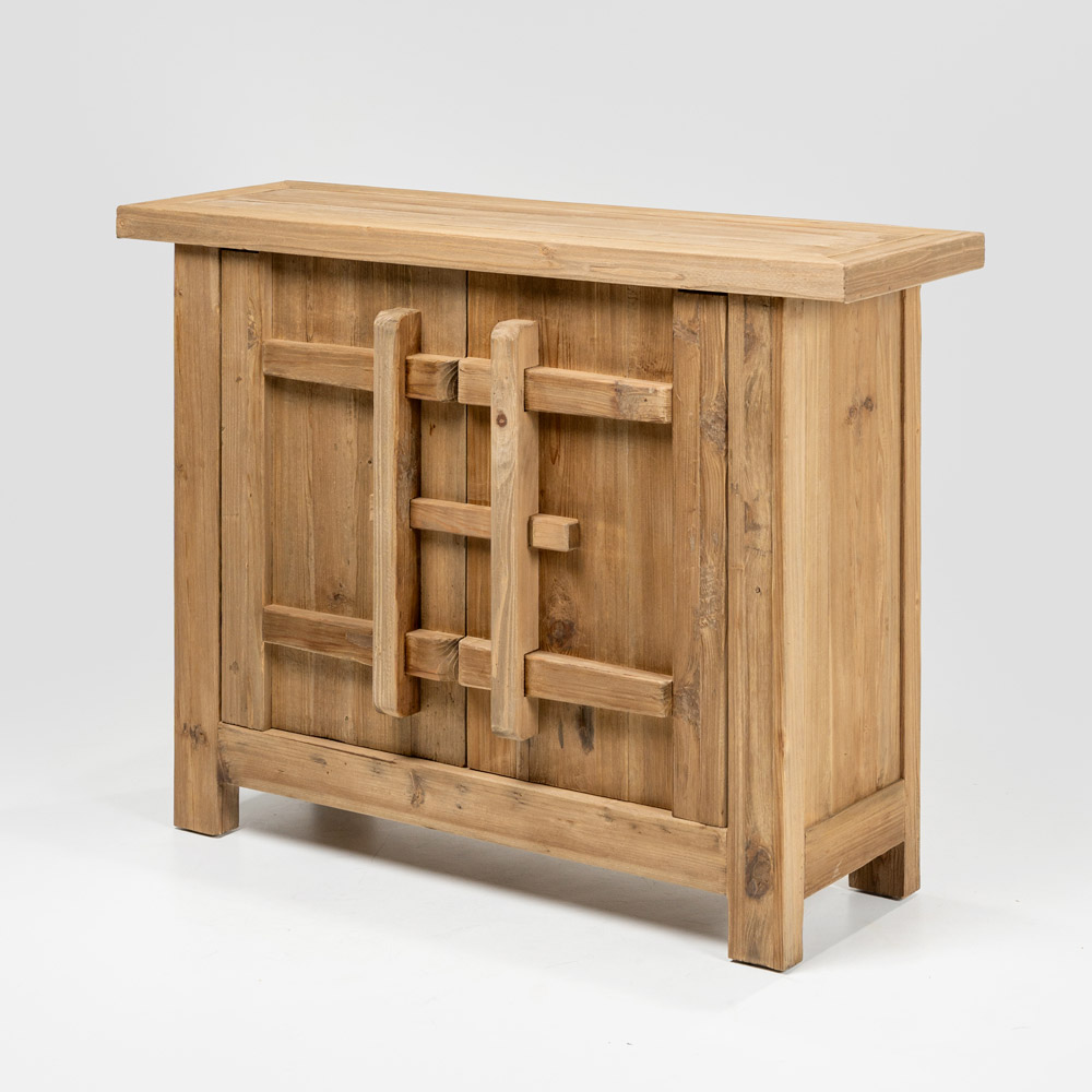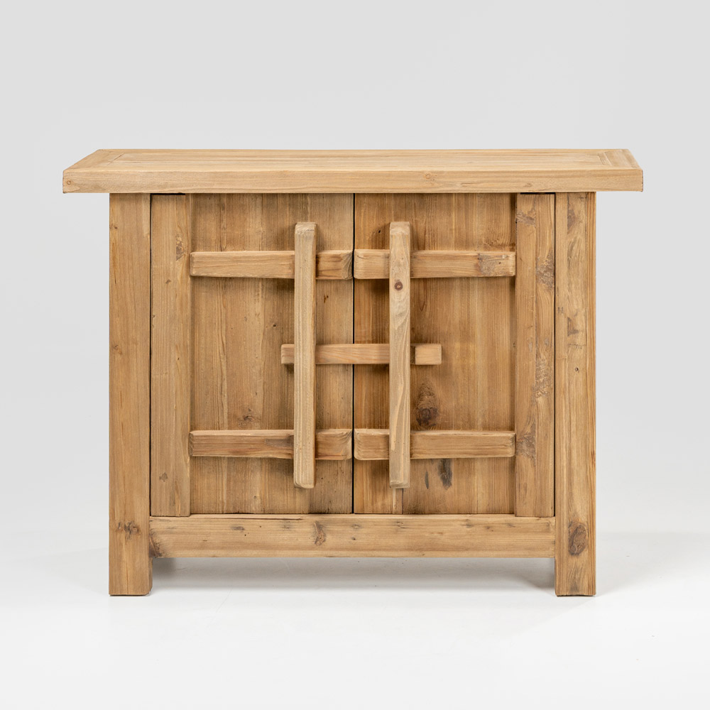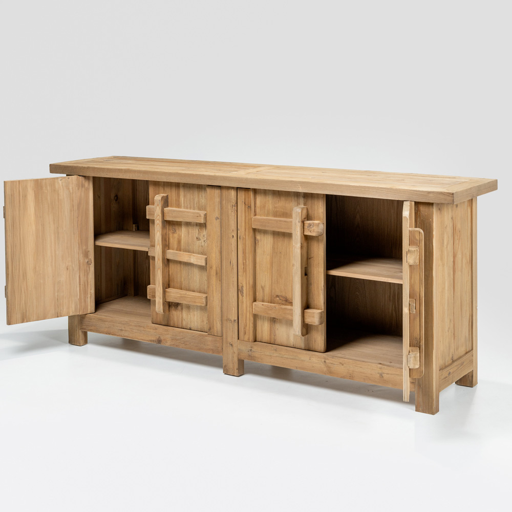 Dit dressoir van verouderd, natuurlijk grenenhout heeft een authentiek en karakteristiek uiterlijk en is ideaal voor rustieke, landelijke of natuurlijke interieurs. De verouderde afwerking benadrukt de houtnerf en de imperfecties ervan, waardoor elk exemplaar uniek en vol persoonlijkheid is.