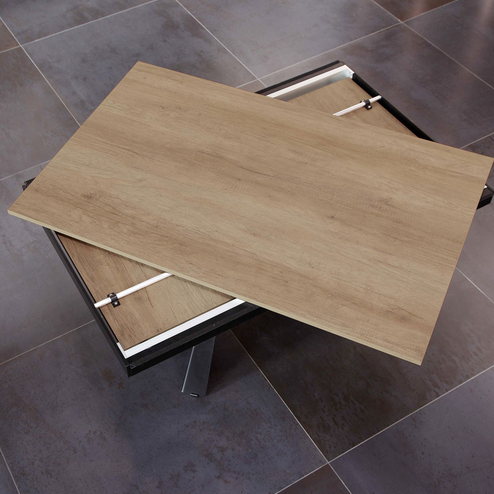 melamine blad, zwart geverfd metalen onderstel met geleiders en structureel frame volledig in