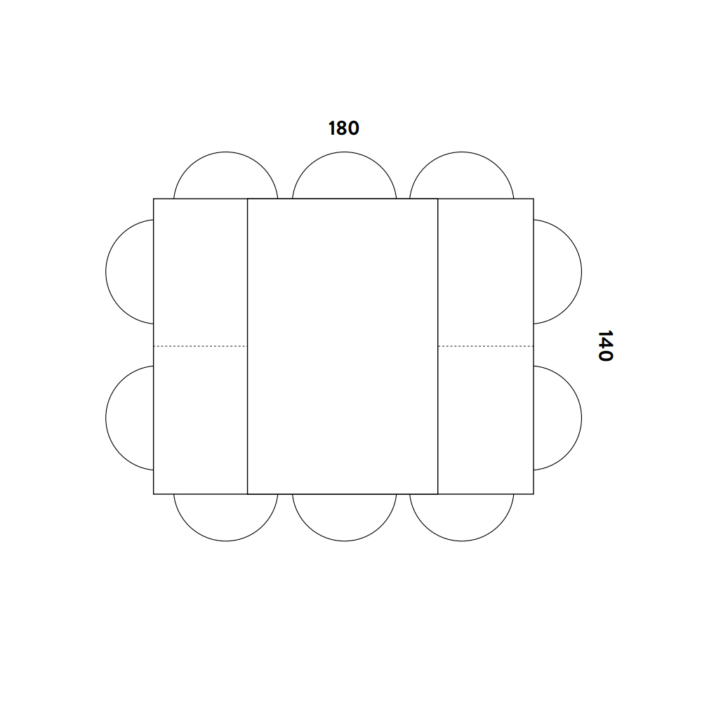 - geopend: lengte: 180 cm x diepte: 140 cm x hoogte: 76 cm