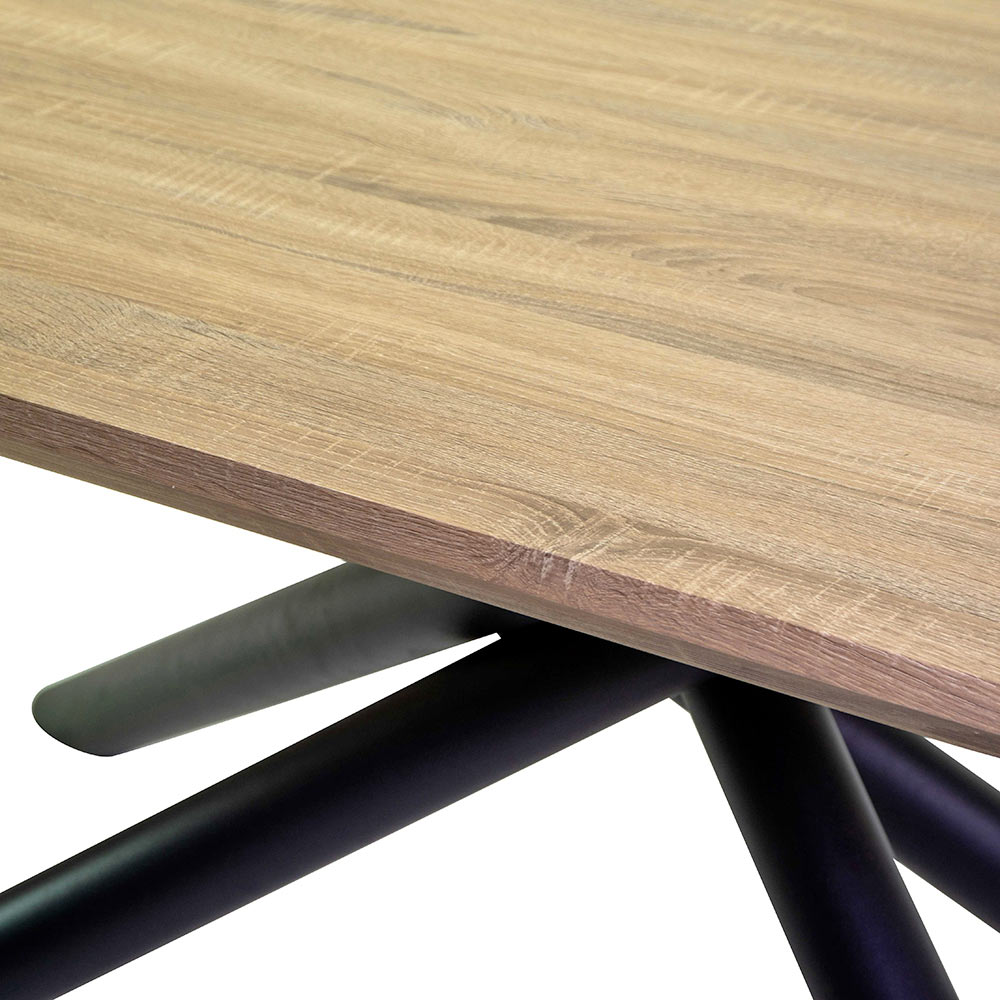 Het MDF blad met een natuurlijk houteffect afwerking voegt warmte en karakter toe aan het meubel en creëert een harmonieus visueel contrast met het donkere metaal. Het gladde en brede oppervlak biedt de ideale ruimte om familie en gasten te verwelkomen, en past perfect in elke omgeving, van de eetkamer tot de moderne woonkamer, tot contractuele contexten zoals restaurants of kantoren.