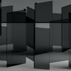 De keuze om een eenvoudig materiaal zoals glas te gebruiken, maar tegelijkertijd met een sterke visuele impact, kenmerkt de hele esthetiek van het product, waardoor het origineel , eigentijds en elegant wordt, ideaal voor wie op zoek is naar een inrichtingsoplossing die het woongedeelte van het huis met moderne en imposante persoonlijkheid . Wat visueel opvalt, is ongetwijfeld de bijzondere vorm van het onderstel dat bestaat uit talrijke glasplaten die asymmetrisch zijn samengevoegd om de tafel een gevoel van dynamiek en een exclusieve en verfijnde touch te geven.