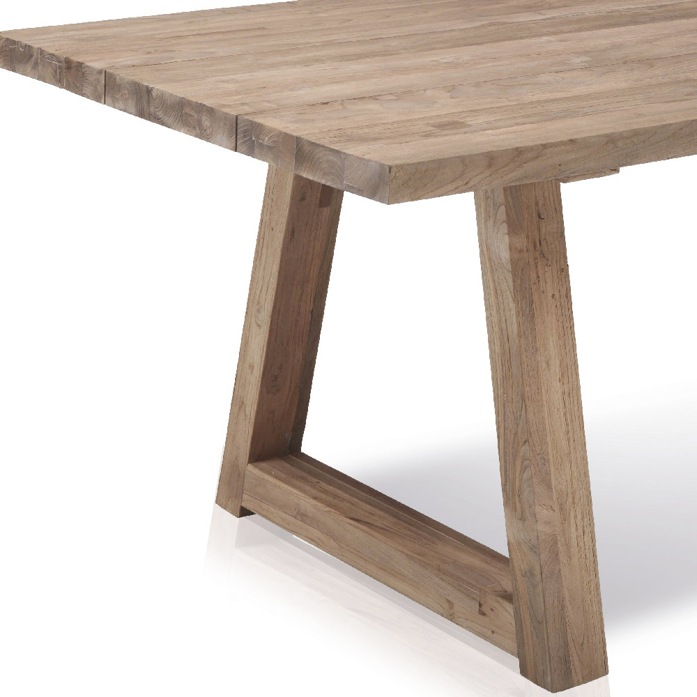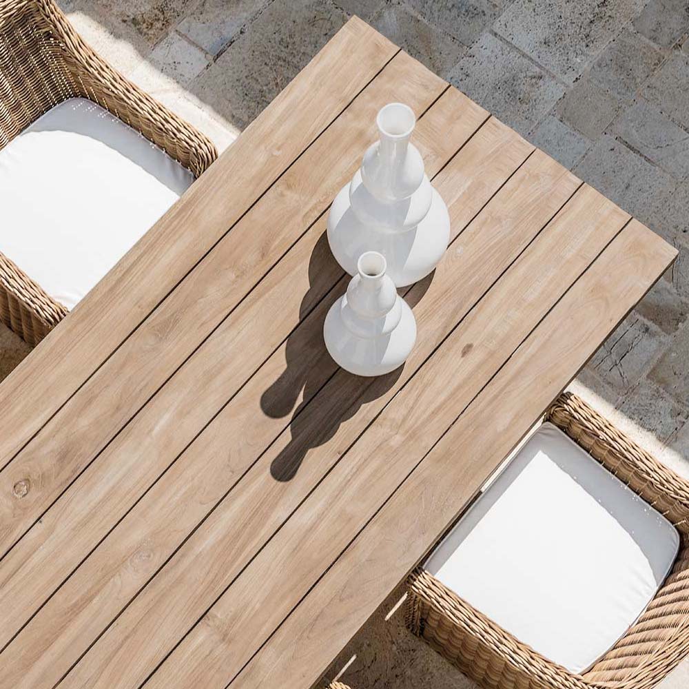 Tuintafel van gerecycled teakhout, volledig handgemaakt in Italië. Deze tafel is geschikt voor elke buitenomgeving, van de woonkamer tot de eetkamer en zelfs bij het zwembad, dankzij het weerbestendige materiaal. De eenvoudige, lineaire afwerking maakt de tafel een origineel idee voor iedereen die zijn buitenruimte smaakvol en stijlvol wil inrichten, zonder in te leveren op functionaliteit en bruikbaarheid.
