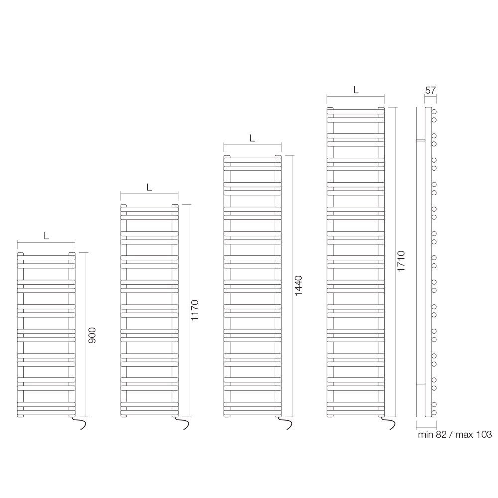 - Lengte 60 cm – Diepte 8,2 cm – Hoogte 171 cm – Vermogen 900 Watt