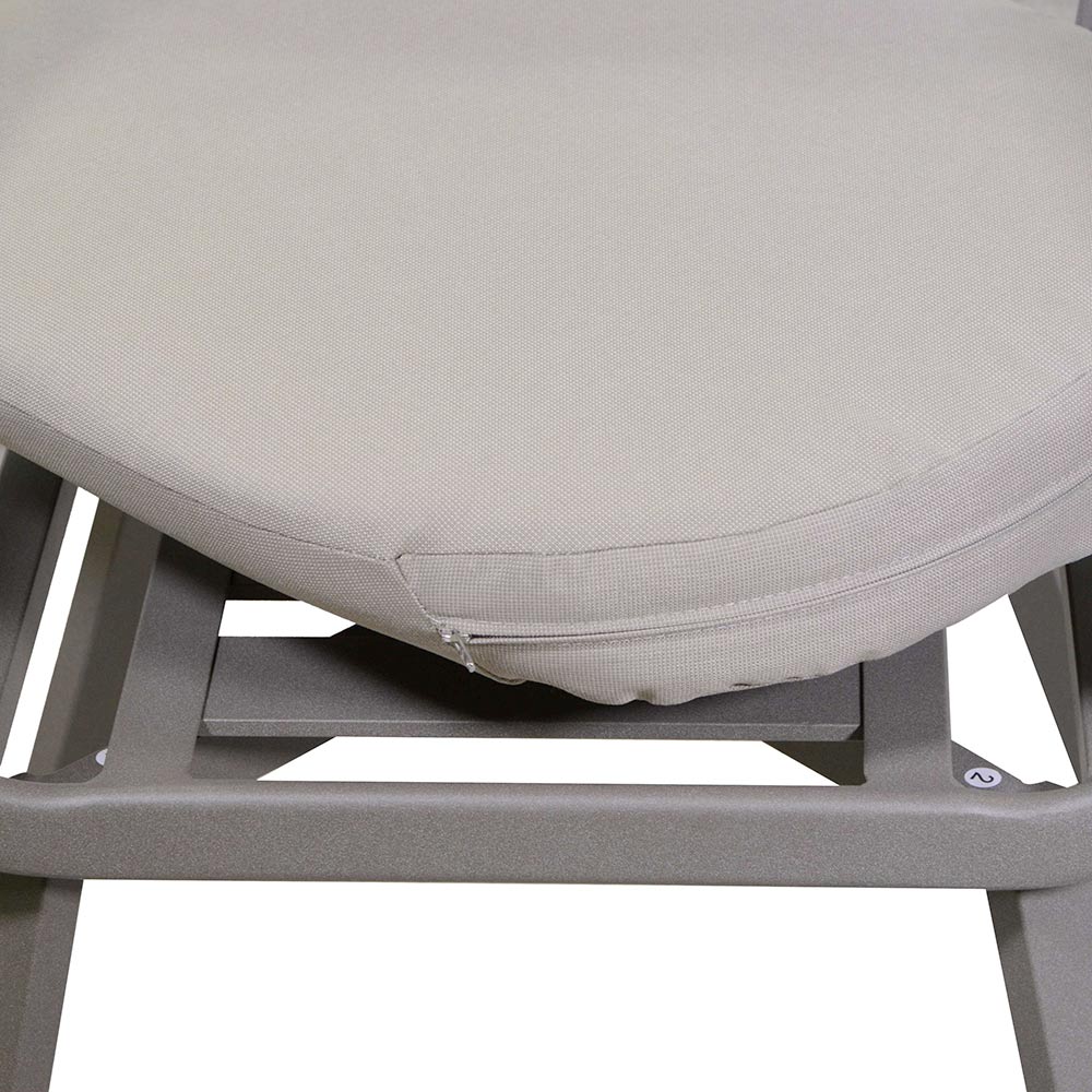 Het stevige aluminium frame zorgt voor duurzaamheid en weerbestendigheid, terwijl de neutrale kleur en elegante vorm perfect integreren met elke outdoor inrichting.